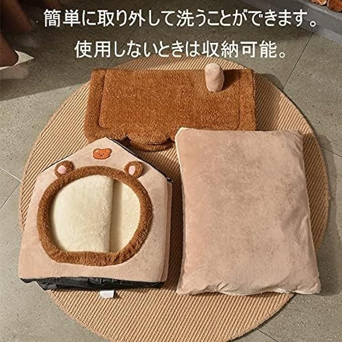 【安心感溢れるデザイン】適切なサイズの入り口と3D立体シリコン綿が寒さを遮断し、暖かさを保ちます。ベッドの形状はペットに安全と快適さを提供します。