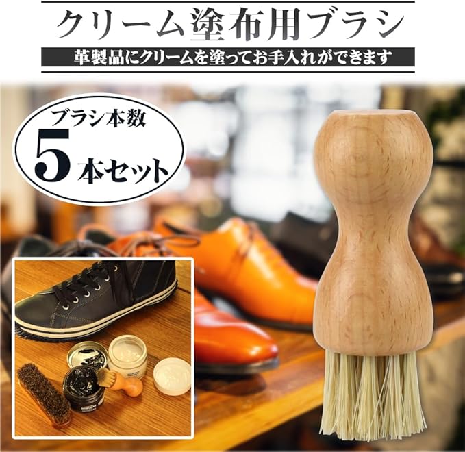クリーム塗布用ブラシ 靴磨き 皮革メンテナンス 均一に塗れる 手が汚れにくい 豚毛 使い分け 5本セット
