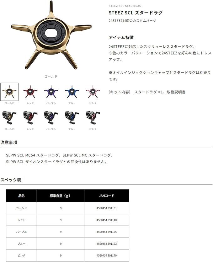 対応機種: 24STEEZ SV TW (※SLPW SCL MC54 スタードラグ、SLPW SCL MC スタードラグ、SLPW SCL ザイオンスタードラグとの互換性はありません)