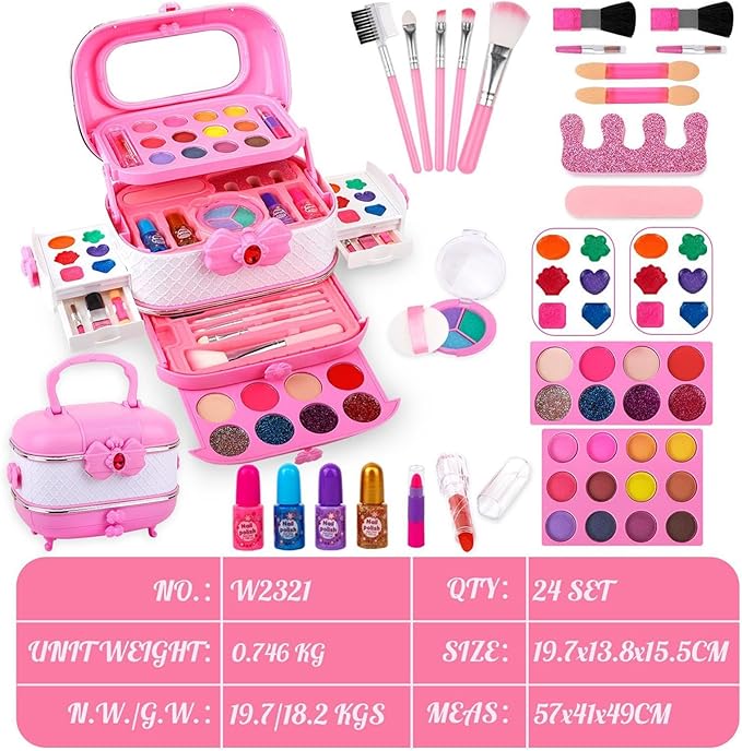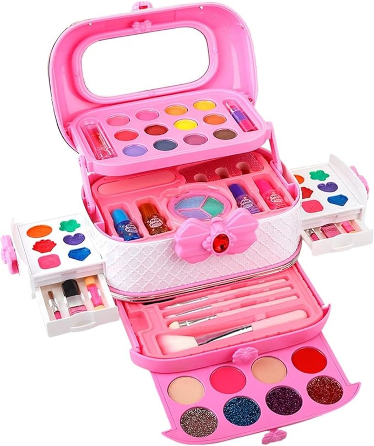キッズメイクアップキット,子供用メイクアップキット, 26 個の女の子リアルメイクアップおもちゃキット, インタラクティブな就学前学習アクティビティ、3歳以上の女の子向けのボックス付き子供用化粧品セット