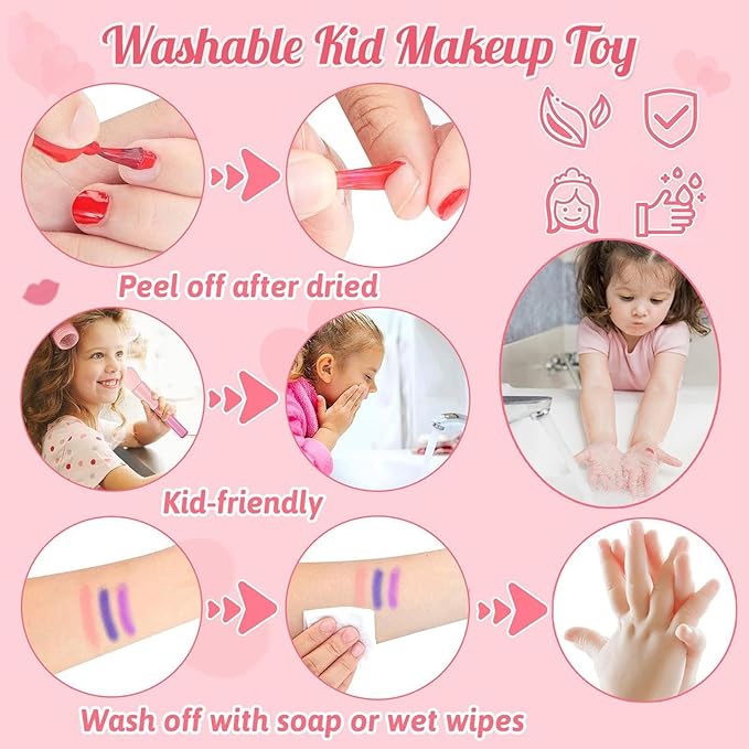 ※安全なプレイタイムを保証:キッズメイクアップキットでリスクのない楽しみをお楽しみください。洗える成分は水で簡単に洗い流せるので、無害な遊びを保証します。ドレスアップやお姫様遊びに最適なこのセットは、安全で長く使用できるように滑らかな縁で設計されています。