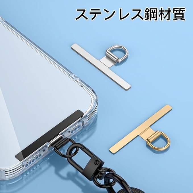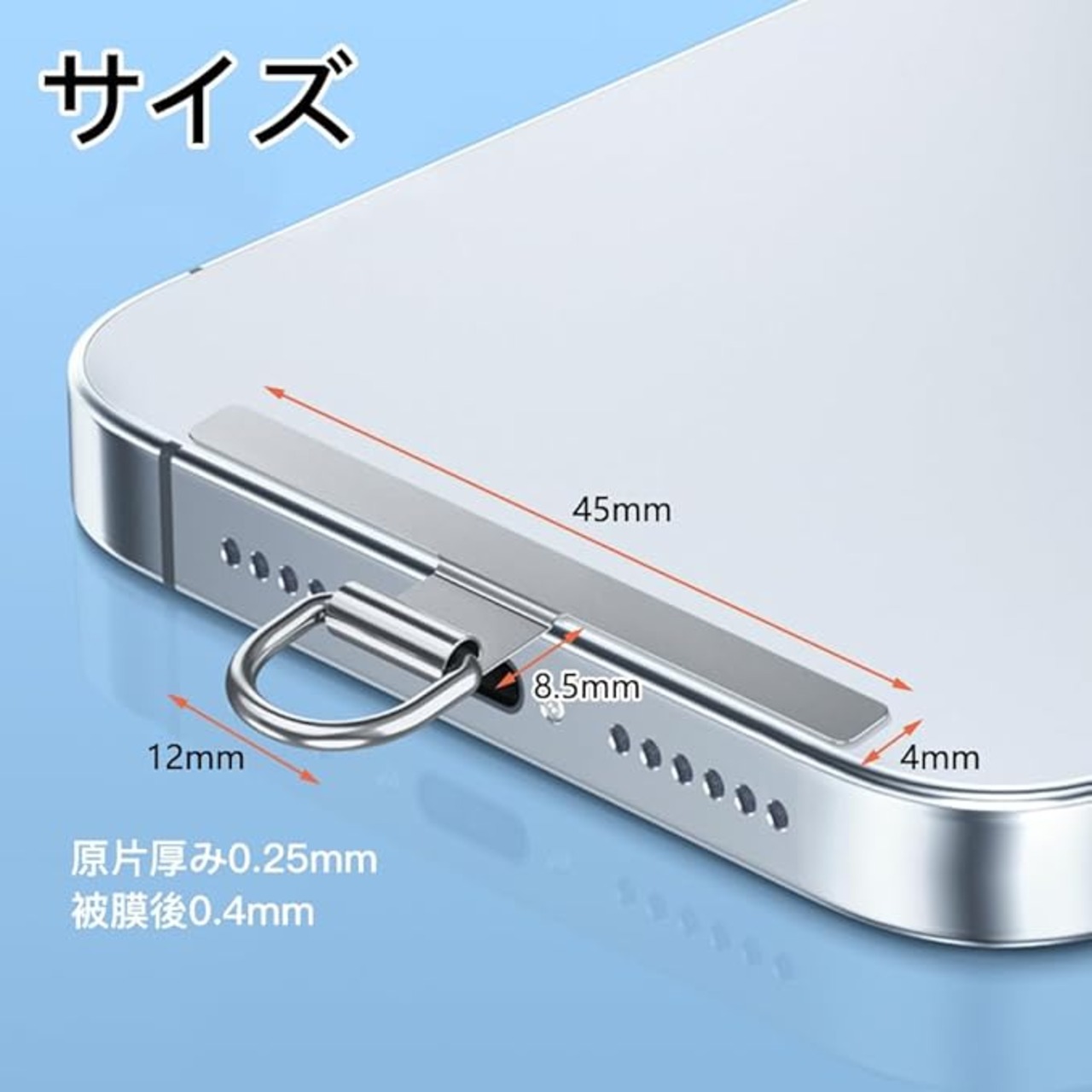 [Mikankawa] スマホ ストラップホルダー ステンレス 0.4mm超薄 携帯ストラップホルダー 軟膜付き 破れにくい 荷重量10KG 充電に妨害なし スマホケースに挟む 2個入り