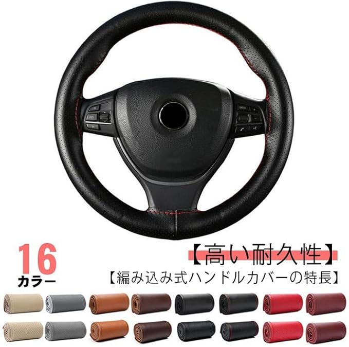 全16色!牛革 ハンドル ハンドルカバー 編み込み ステアリングカバー 手縫い レザー 本革 おしゃれ 編み上げ 滑り止め カバー 無地 ステアリング 内装用 38cm シンプル 軽量 耐摩耗 インテリア 薄手 車内用品