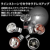 【ラインストーンでキラキラドレスアップ】高級感のあるメタリックなデザインに、ラインストーンをちりばめました。機能と美しさを兼ね備え、快適なドライブと車内のワンポイントアクセントに。