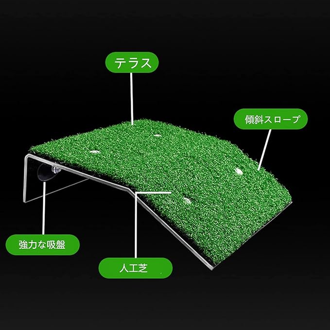 【優しいデザイン】自然に傾斜したデザインを採用して、生活環境を自然に近づけ、カメが登りやすい作りになっています。しかも、人工緑芝で落下しにくいので、カメが休憩して階段を上るのに非常に適しています。