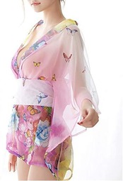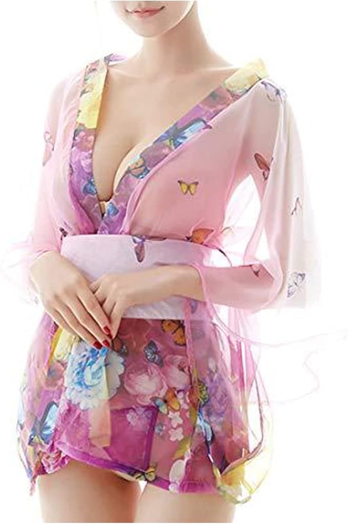 超セクシー ミニ着物ドレス 花魁 コスプレ コスチューム 和風 花柄 薄手 シースルー ミニ浴衣 ランジェリー 着物3点セット