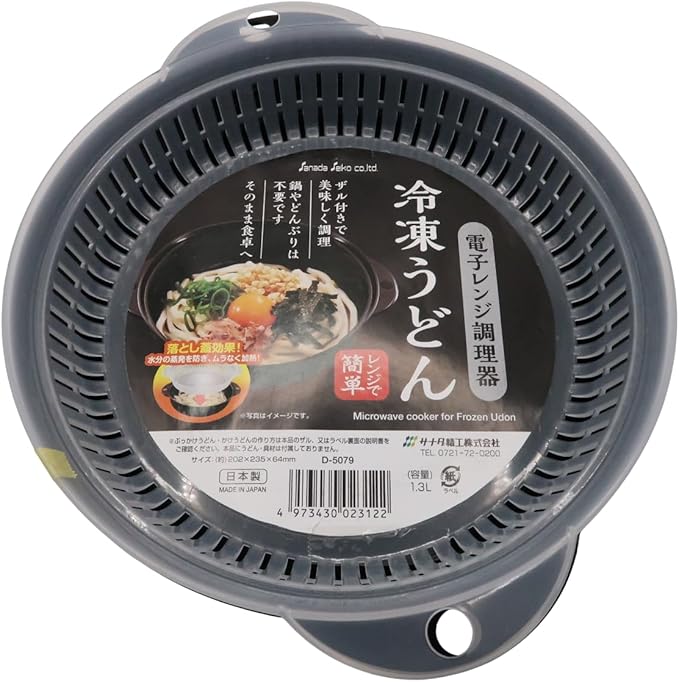 サナダ精工 (株) 電子レンジ調理器 冷凍うどん ザル付き 鍋 どんぶり不要 そのまま食卓へ 時短料理 簡単調理 ひとり暮らし 単身赴任 家庭 主婦 20.2 23.5 6.4cm 容量 1.3L 日本製 4973430023122