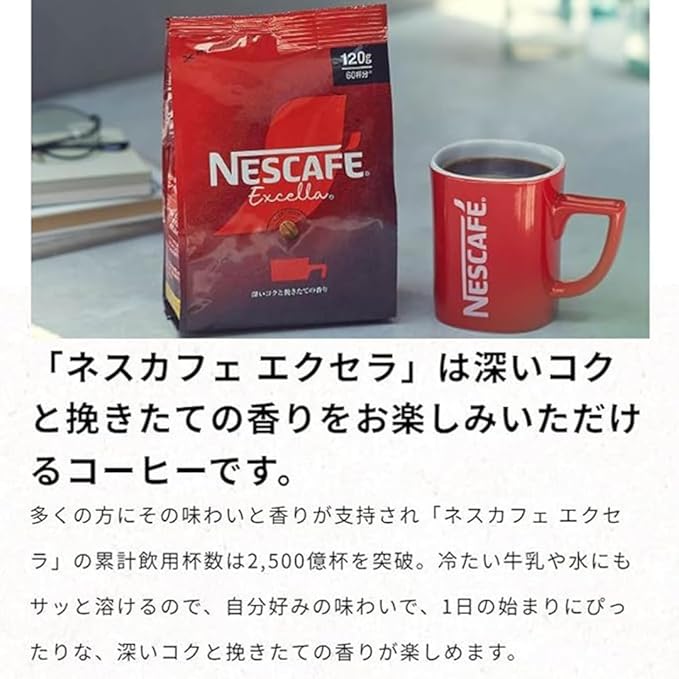 ネスカフェ エクセラ レギュラーソリュブル コーヒーは、深いコクと挽きたての香りを楽しめるインスタントコーヒーです。