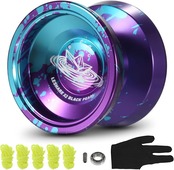 アルミヨーヨーボール、安定した高速ルーチン、陽極酸化表面処理、滑らかで静かな回転、ギフト用ヨーヨーストリンググローブ (パープル&ブルー)