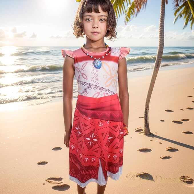 お子様の楽しい思い出作りに! あの海と冒険のヒロインになりきれるコスチューム! 「伝説の海」をイメージした美しいコスプレが登場!この衣装を身に着ければ、南国の海を愛し、勇敢に冒険へと旅立つタウタイプリンセスの気分に!