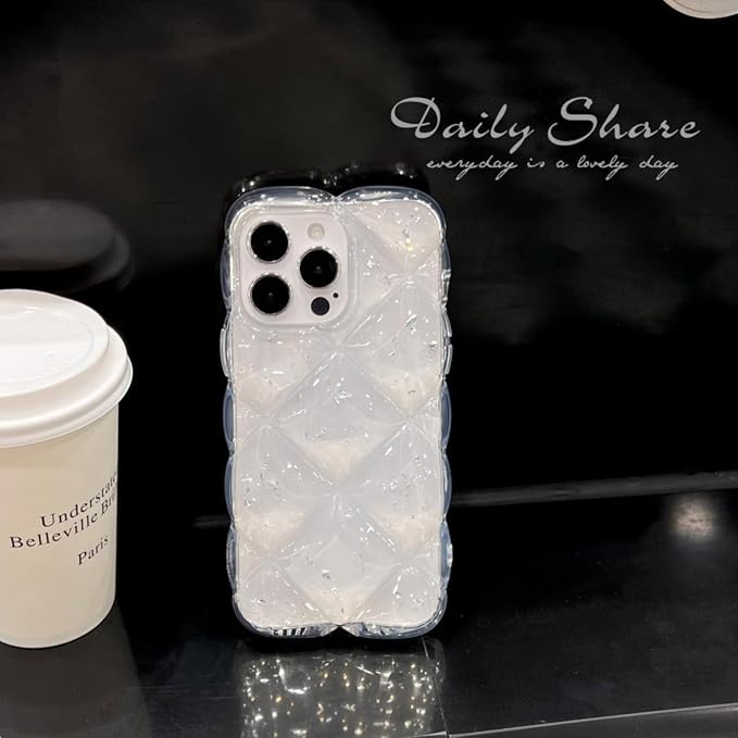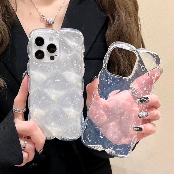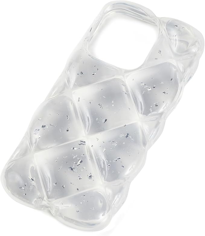 【今流行りのキルティングデザイン】 うねうねとしたエッジとダイヤ柄のひし形凸凹加工、アルミ箔シルバーの装飾を施した、大人可愛いiPhone用クリアケースです。シンプルながらもゴージャスな雰囲気を演出します。