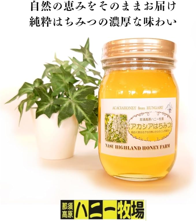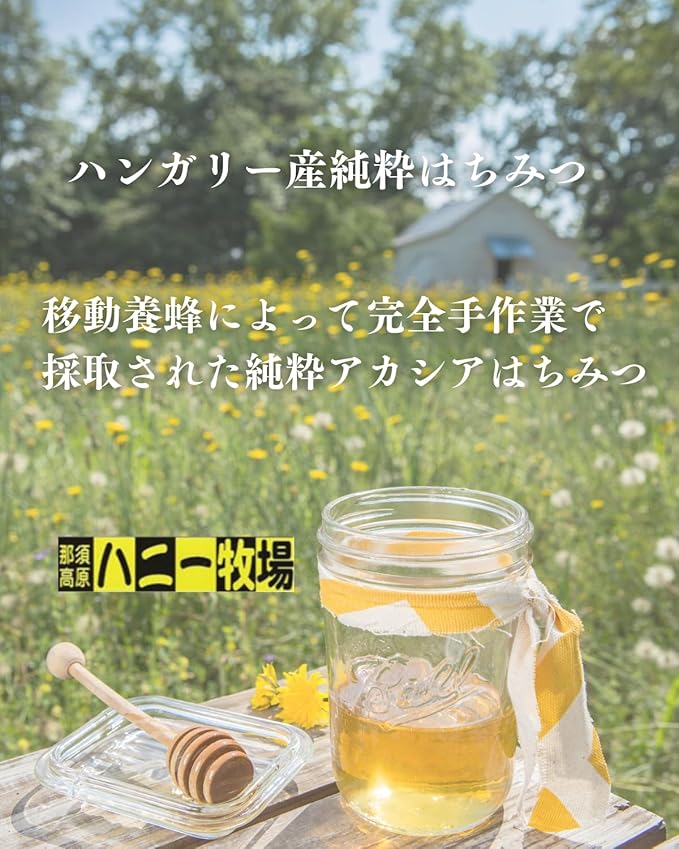 那須高原ハニー牧場のハンガリー産アカシアはちみつ — 全国で数十万人の方が視聴されていて、一度は耳にしたことがある、あの上質な甘みをあなたの食卓へ — テレビやラジオでも話題の 「那須高原ハニー牧場」 から、こだわり抜いた 純粋アカシアはちみつ をお届けします。 ハンガリーの大自然が育んだ、透明感のある美味しさ アカシアはちみつは、クセが少なく 上品でまろやかな甘み が特徴。 ハンガリーの広大なアカシアの森で採蜜され、純度の高い状態でお届けするため、香りも味わいも一級品です。 透き通るような黄金色とさらりとした口当たりが、多くの人に愛される理由。 料理にも、ティータイムにも。日常のあらゆるシーンで活躍 ・ パンやヨーグルトにかけて、朝食を贅沢に ・ 紅茶やコーヒーにひとさじ加えて、優雅なひとときを ・ お料理の甘みづけに使えば、ワンランク上の味わいに アカシアはちみつは 結晶化しにくい ため、長期間なめらかな状態をキープできるのも魅力です。 「本当に美味しいはちみつを、もっと身近に」 那須高原ハニー牧場は 品質と純度にこだわり、自然の恵みをそのままお届けします。 はちみつ本来の美味しさを、ぜひご堪能ください。 毎日の食卓に、自然の優しさと贅沢な甘みをプラスしてみませんか?