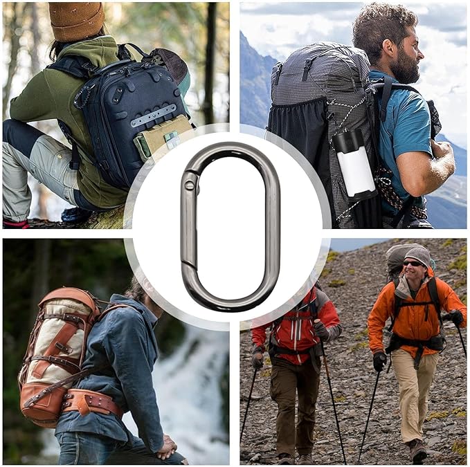 コンパクトな汎用性のあるアタッチメント:このカラビナーのコンパクトな楕円形のデザインは、便利なアクセスと優れたポータビリティを提供し、旅行やアウトドアアクティビティ中に軽量でバックパックやベルトに簡単に取り付けられるようにします