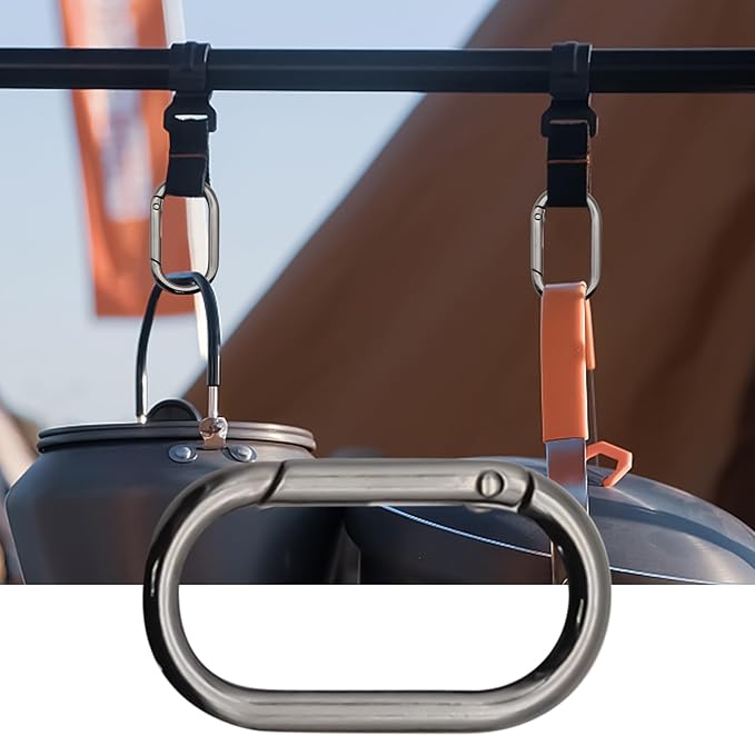 多目的カラビナー:このカラビナーは、キャンプや日常の使用に最適でありながら、屋外ギアを楽につなぐ多目的デザインを備えています