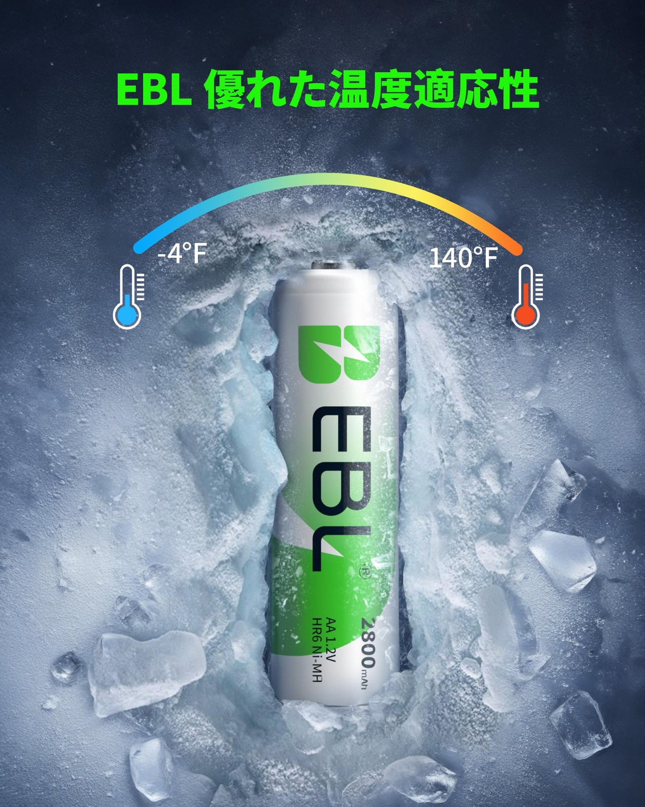 EBL 単三電池 充電式 2800mAh 単3 充電池 大容量 8本入り ニッケル水素充電式電池 長寿命 充電でんち ブリスター 電池 充電 単3 防災電池 ミニ四駆 充電池 単3 充電式