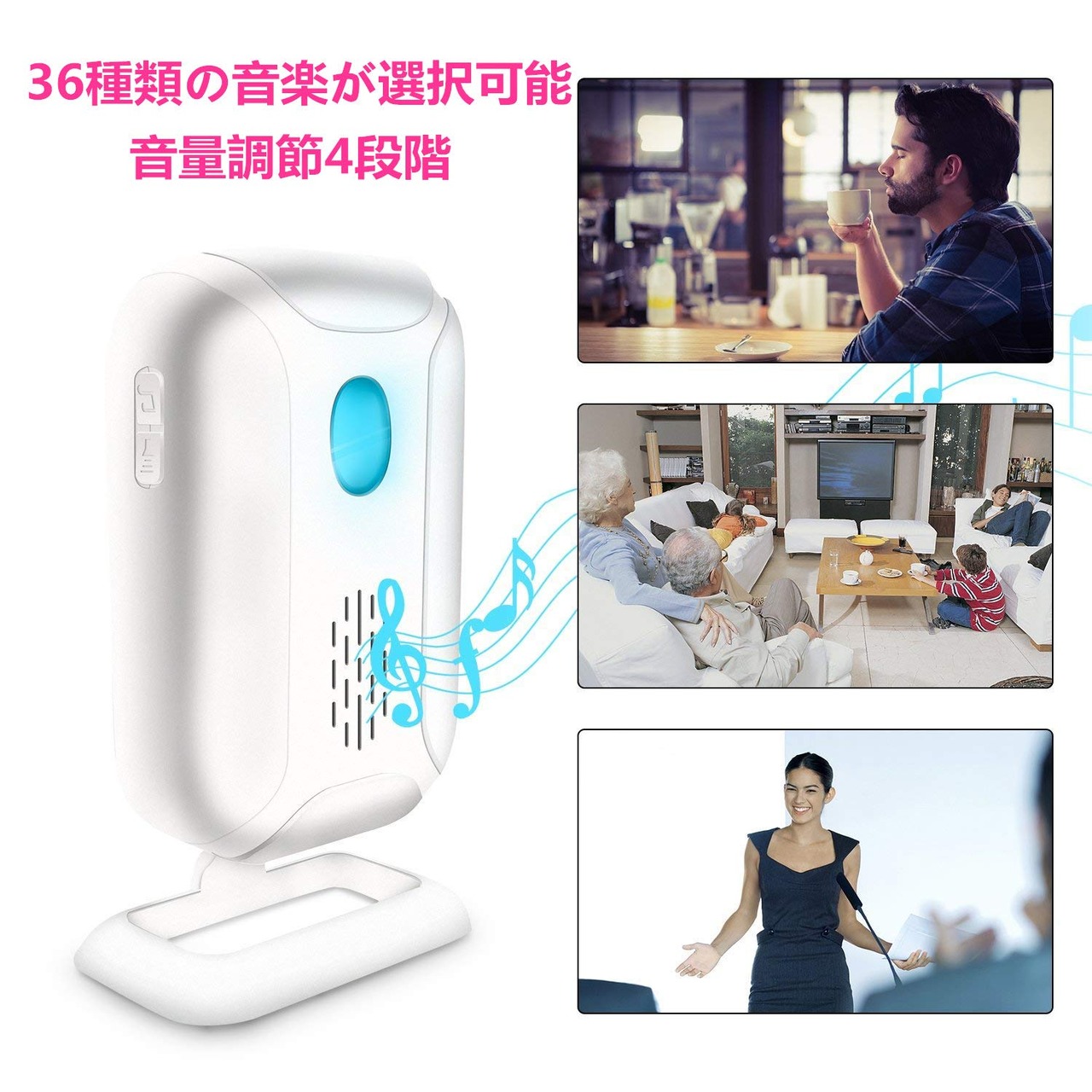 Wireless life 人感センサー チャイム 人感チャイムセット ドア窓チャイム ワイヤレスチャイム 赤外線センサー 防犯 インターホン ナイトライト 5つモード 4段階の音量 36種類の呼出音楽 1個送信機 1個受信機 日本語取扱説明書 (white)