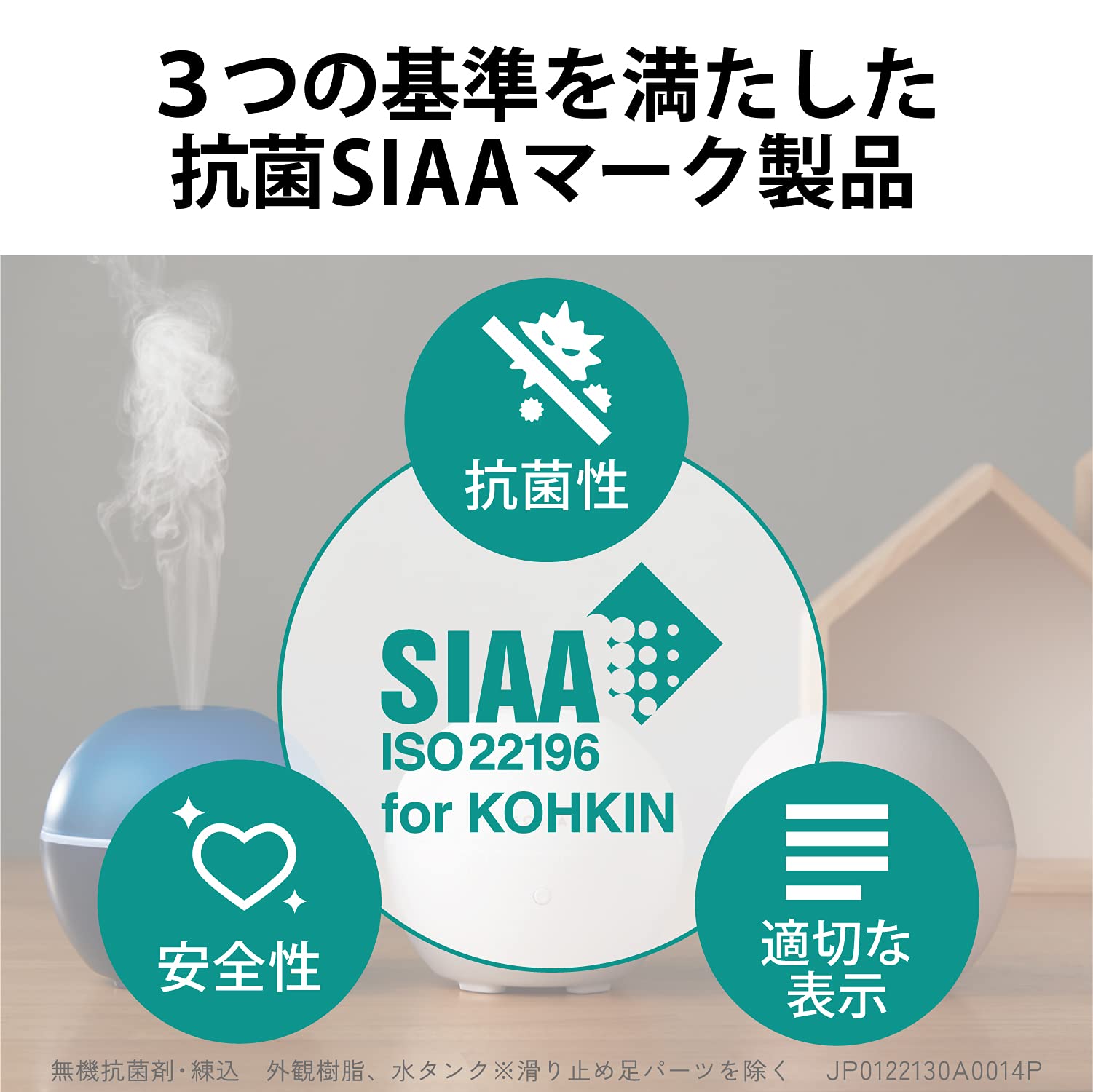 細菌が繁殖しやすいタンク部分にも抗菌加工をほどこしており、より清潔に安心してご使用いただけます。※ SIAA(抗菌製品技術協議会)は、抗菌・防カビ・抗ウイルス加工製品に関する品質や安全性のルールを整備し、そのルールに適合した製品にSIAAマーク表示を認めています。※ 抗菌とは、製品の表面上に存在する細菌の増殖を抑制することです。JIS(日本産業規格)では、抗菌加工されていない製品の表面と比較して、細菌を99%以上抑制出来ている場合、その製品に抗菌効果があると規定されています。