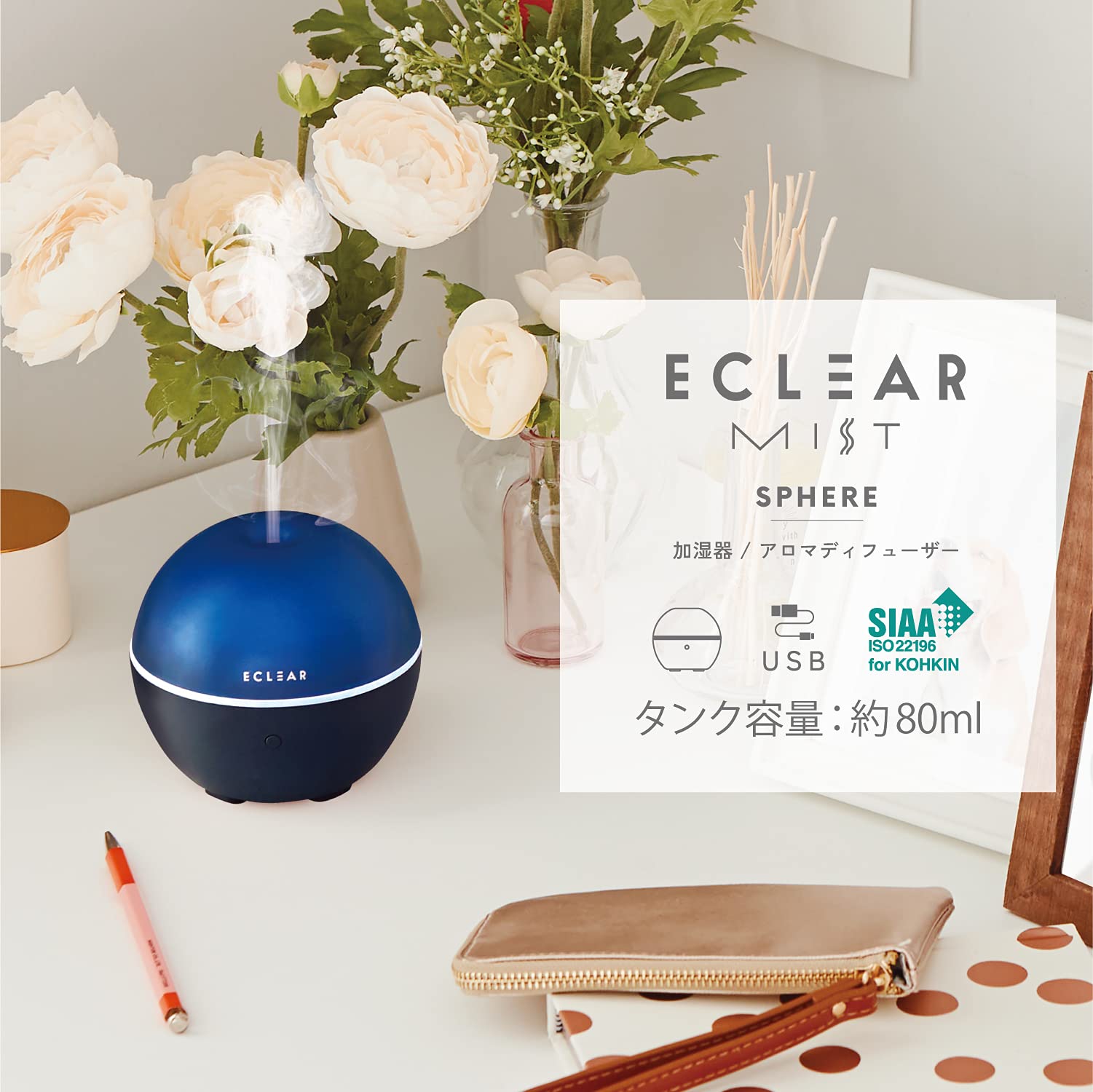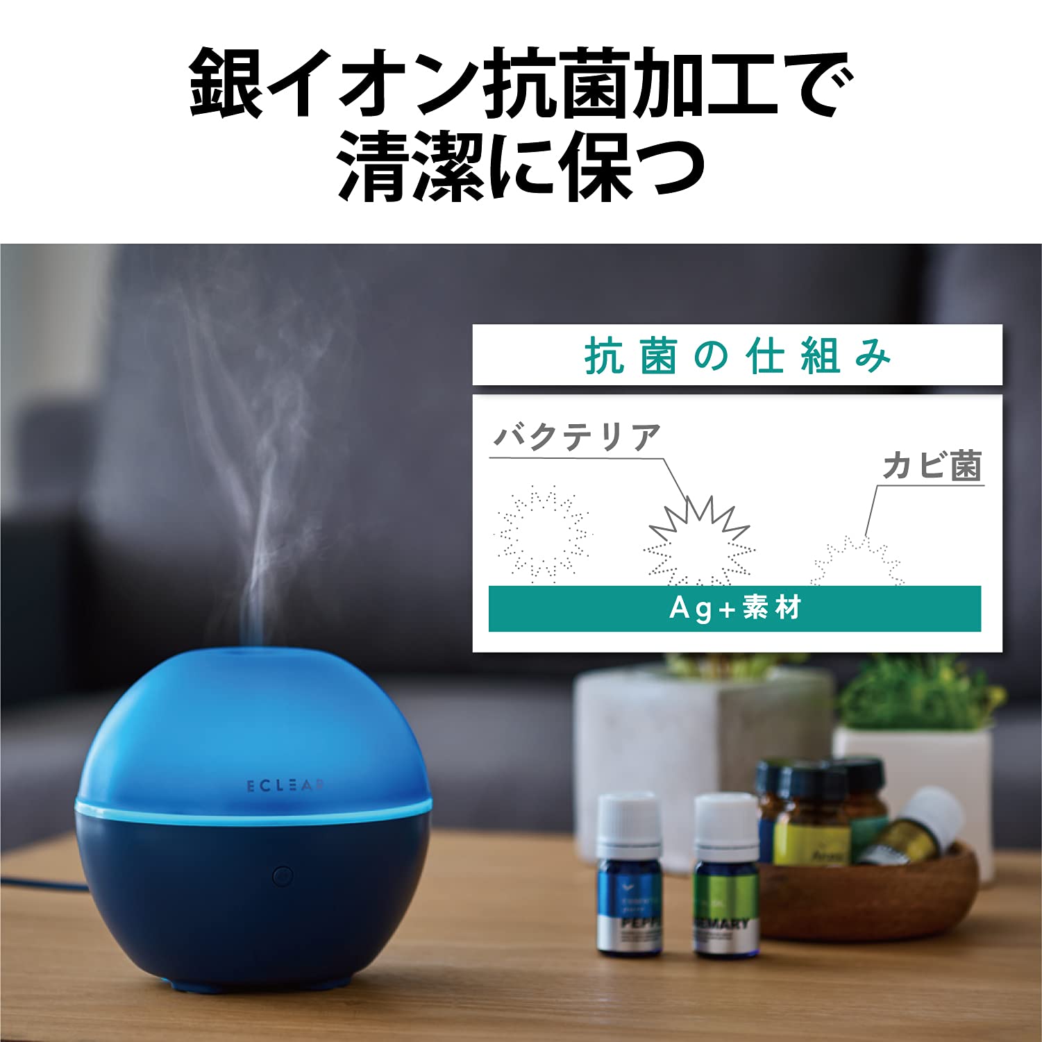 【2021年モデル】 エレコム 加湿器 超音波式 抗菌 アロマディフューザー エクリアミスト USB給電 容量80ml 最大7時間 自動電源OFF機能 丸型 間欠噴霧モード搭載 次亜塩素酸水対応 ネイビー HCE-HU2102UNV