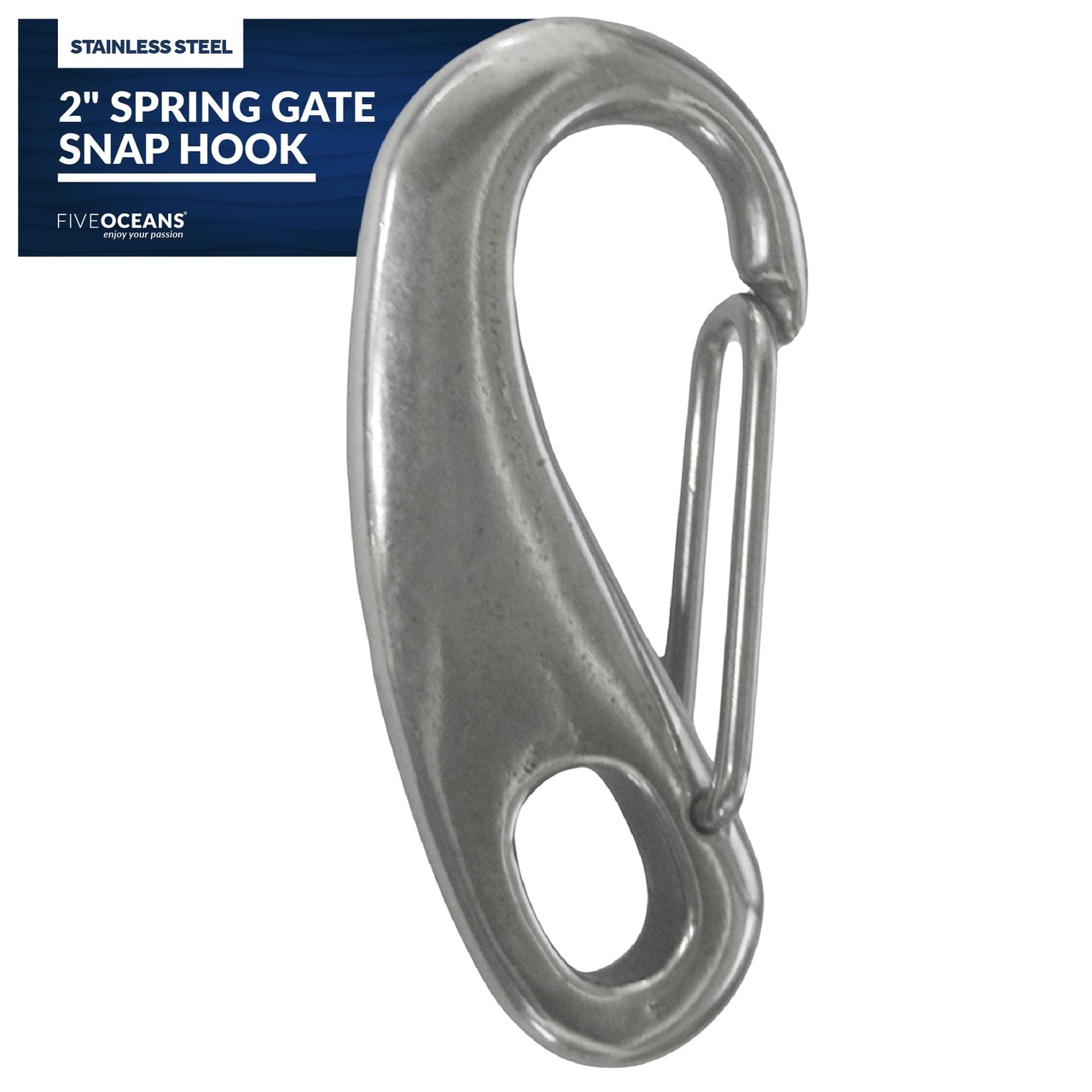 Five Oceansのスナップフックはすべてステンレススチール製で、海洋ユーザー向けです。 <BR><BR>仕様: <BR><BR>素材:316ステンレススチール。 <BR>スナップ フック 2インチ エッグタイプ <BR><BR>製品番号: FO-461。