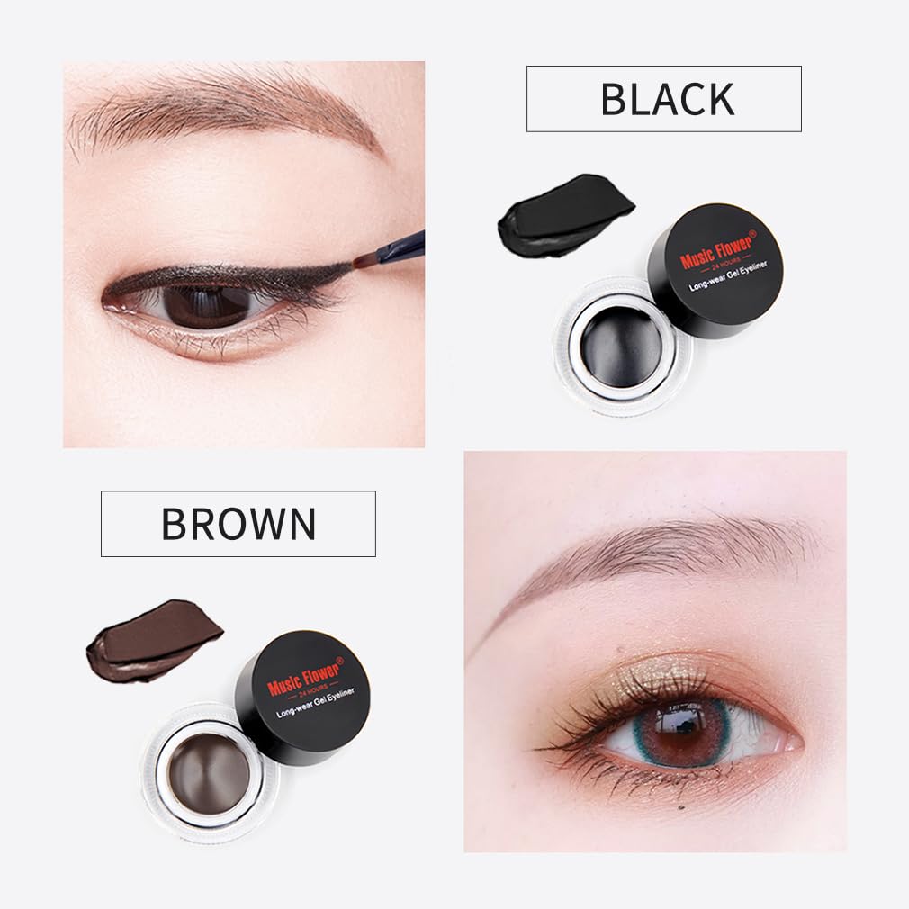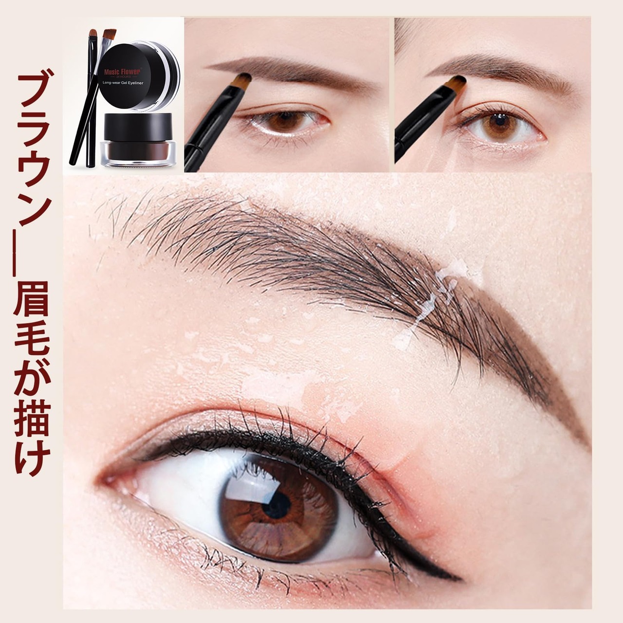 ジェル アイライナー ブラック+ブラウン 2個セット ジェルライナー アイライナー 落ちない クリーミータッチライナー アイライナー ジェル ブラシが2本付属