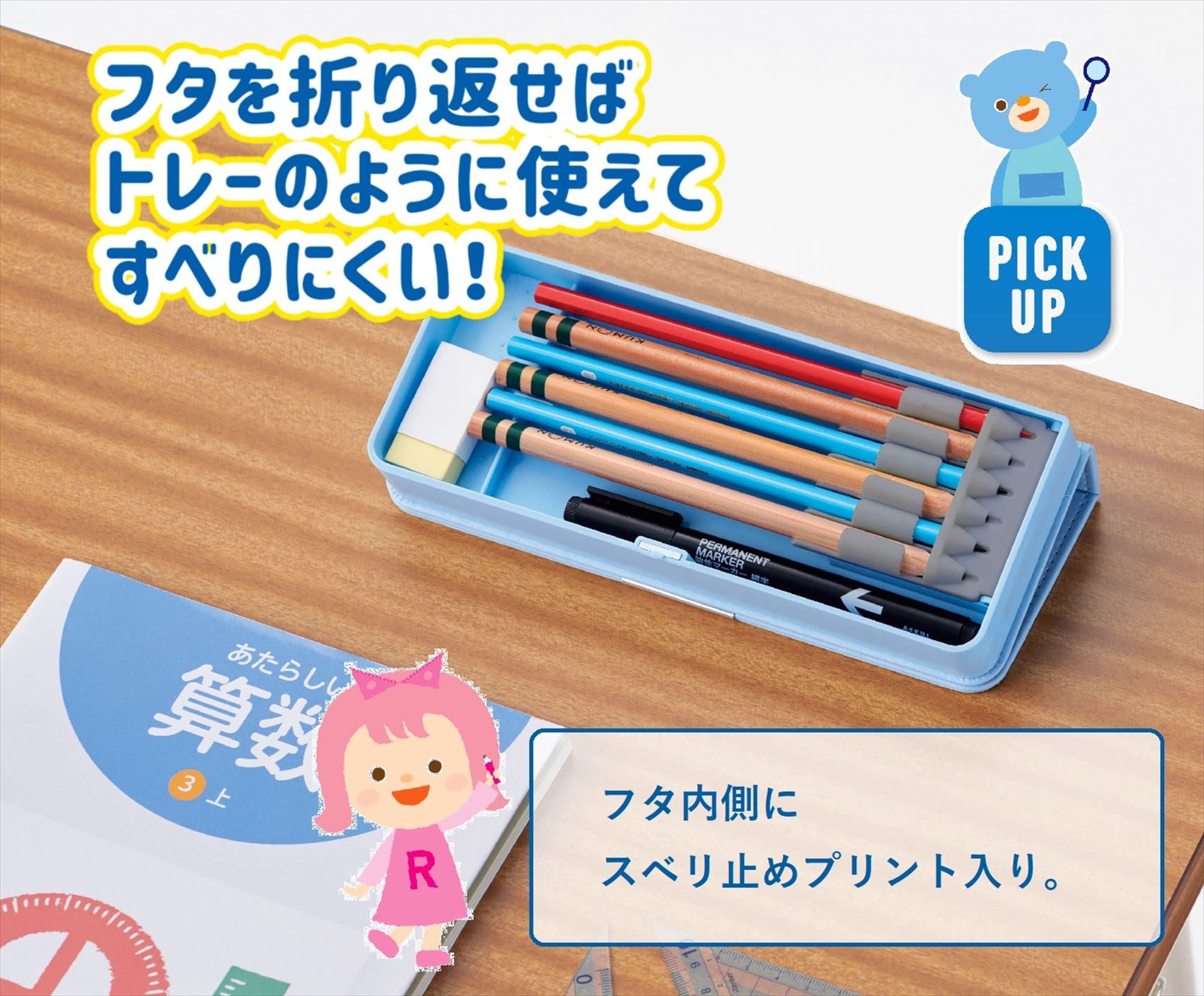 フタを折り返せばトレーのように使えてすべりにくい筆箱。