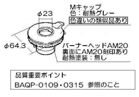 バーナーの上にセットをする、炎が出る部分のキャップです。<br><色>グレー(塗装なし)<br>※裏面に「AM20」刻印あり<br><br>※刻印の「-」(ハイフン)以降の数字は製造番号の為、ハイフン以降の数字がお手持ちの部品と異なる場合でも対応する部品です。 <br>