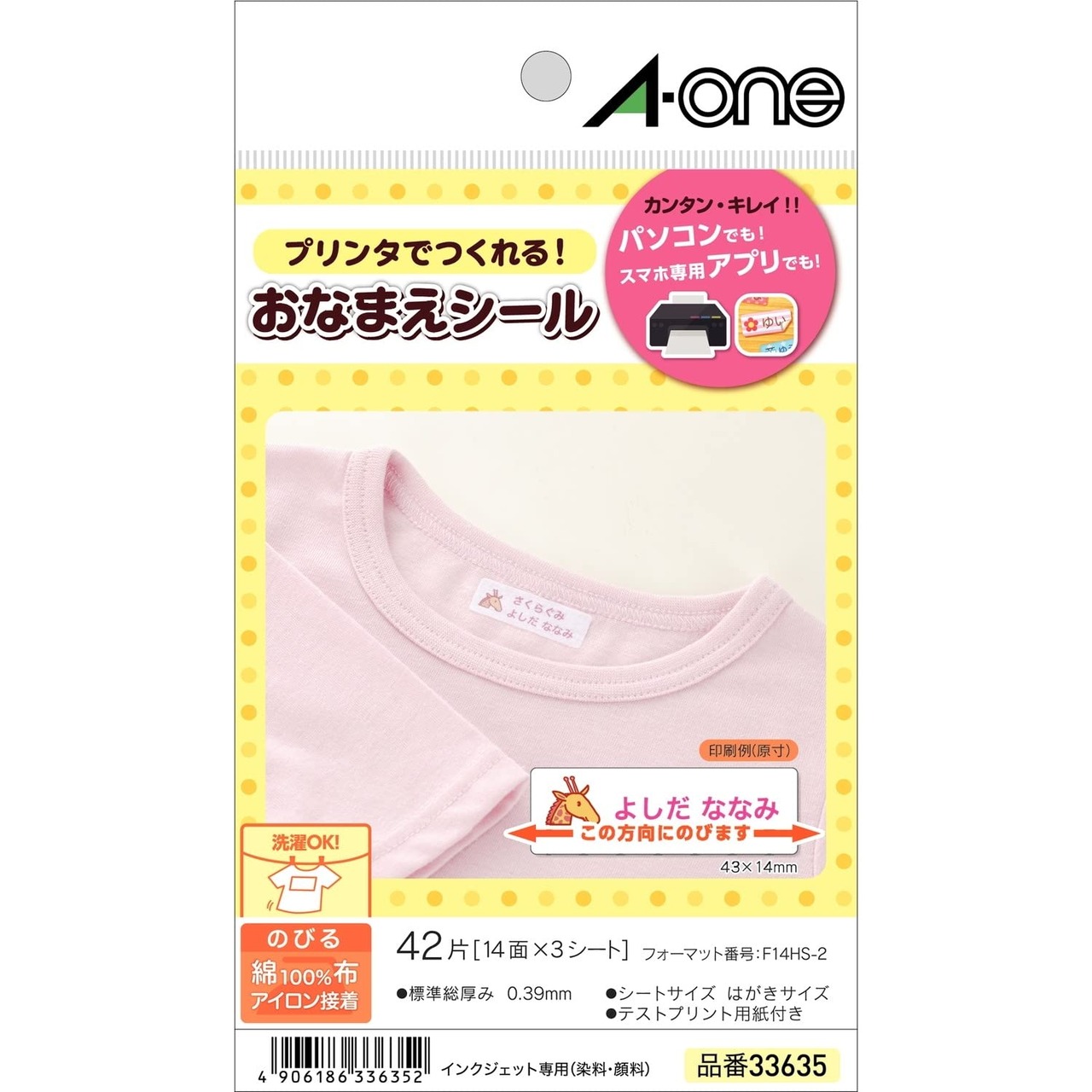 エーワン お名前シール 布プリ のびるタイプ アイロン接着 14面 3シート 33635