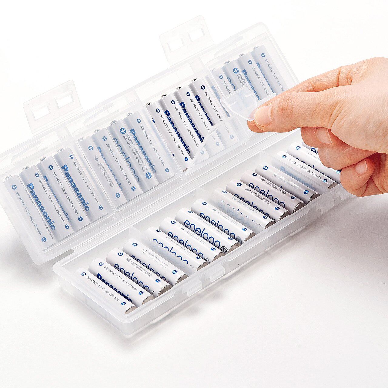 単4乾電池を4本ずつに分けて上下2段で収納できる大容量電池ケース
