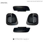 【適合車種】<br> 200系ハイエース / レジアスエース 200系 (KDH200/TRH200系)<br> 4型 / 5型 / 6型 (H25.12~) 標準ボディ / ワイドボディ / スーパーロング 対応<br> ※スマートキー車専用 ※DX/スーパーGL対応<br><br> <br> ・サイドビューの印象を引き締めます。<br> ・両面テープで貼り付けるだけの簡単取り付け。<br> ・ドア周りのキズ防止に最適なラバー製のアウタードアプロテクターです。<br> ・スポーティなイメージでユーロスタイルカスタムにもオススメ。<br> <br> 【商品仕様】<br> ・カラー:ブラック<br> ・材質:ラバー素材<br> <br> 【ご注意事項】<br> ※説明書・解説書等は付属しません。<br> ※取付前には仮合わせ作業を行い、取付面の脱脂作業等を十分に行ってください。<br> ※取り付け後の返品・交換は承っておりませんので、予めご了承下さい。<br> ※取付けサポートは致しておりません<br> ※ご不明な点や取付けは専門業者様にご相談ください。<br> <br> 【商品内容】<br> ・フロントプロテクター ×2<br> ・リアプロテクター ×4