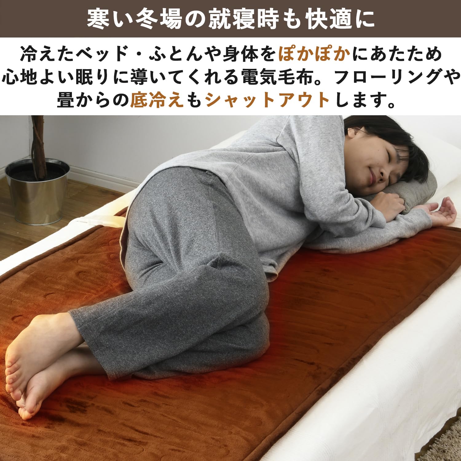 【寒い冬場の就寝時も快適に】寒い季節に冷えたベッド・ふとんや身体をぽかぽかにあたため、心地よい眠りに導いてくれる電気毛布。フローリングや畳からの底冷えもしっかりシャットアウトします。