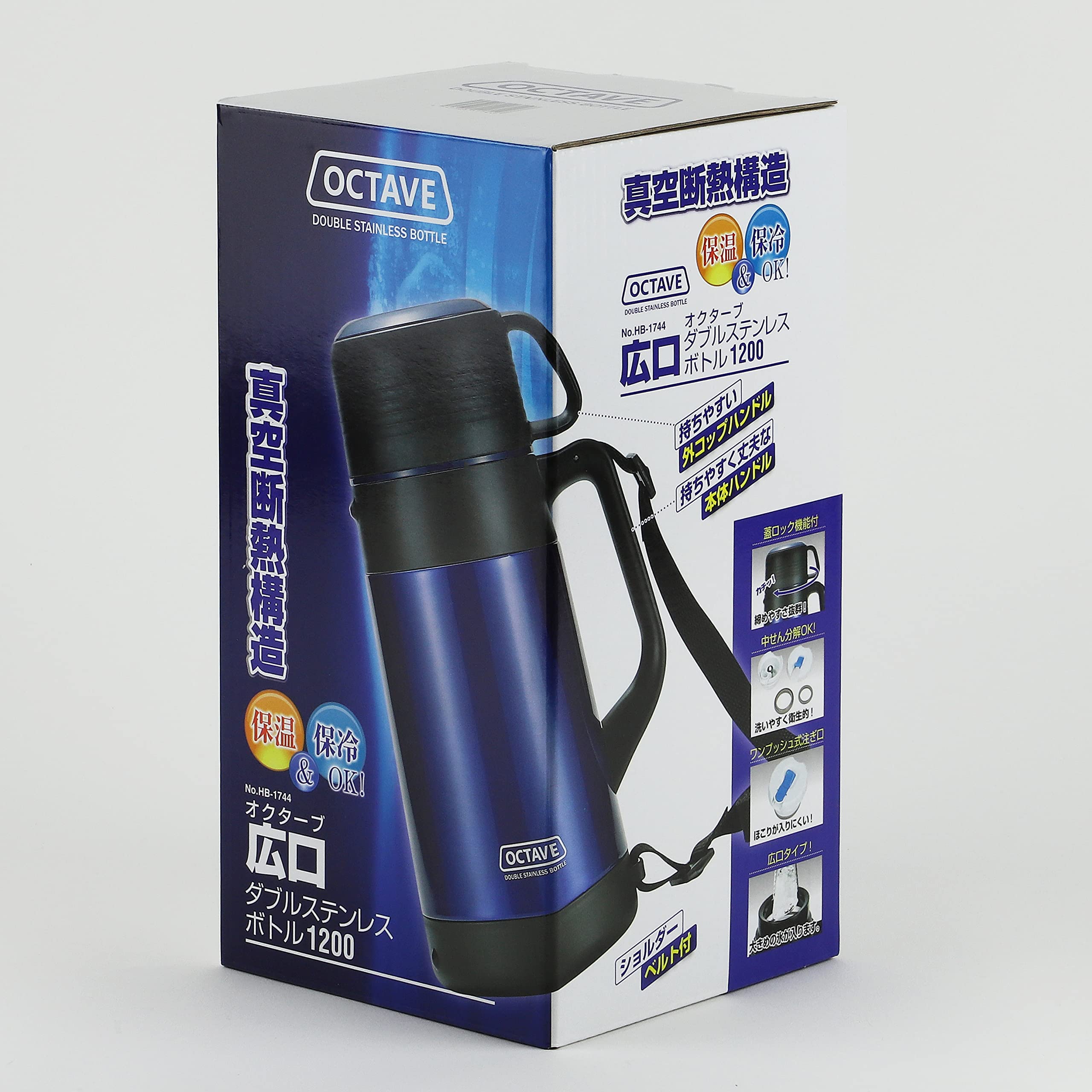 パール金属 水筒 1200ml コップ付 広口 ダブル ステンレス ボトル オクターブ HB-1744 ブルー