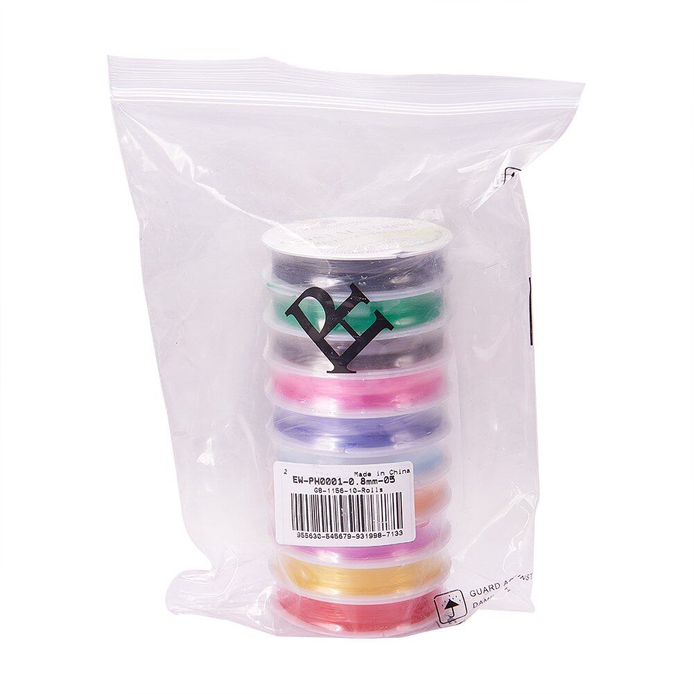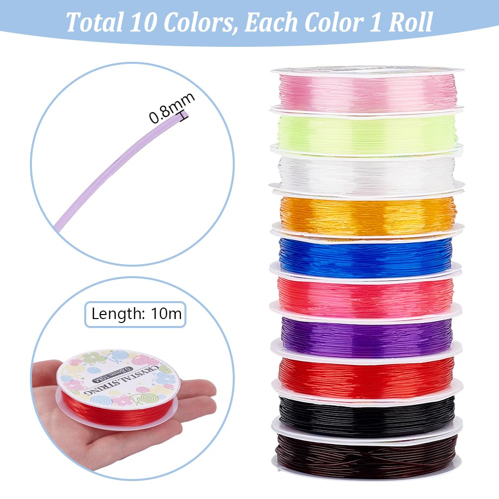PH PandaHall 10巻き 約10m/巻き ゴム紐 オペロンゴム 直径0.8mm シリコンゴム 通しワイヤー 強力な伸縮性 DIY用 手芸用品 ジェリー作り 素材 アクセサリーパーツ 混合色