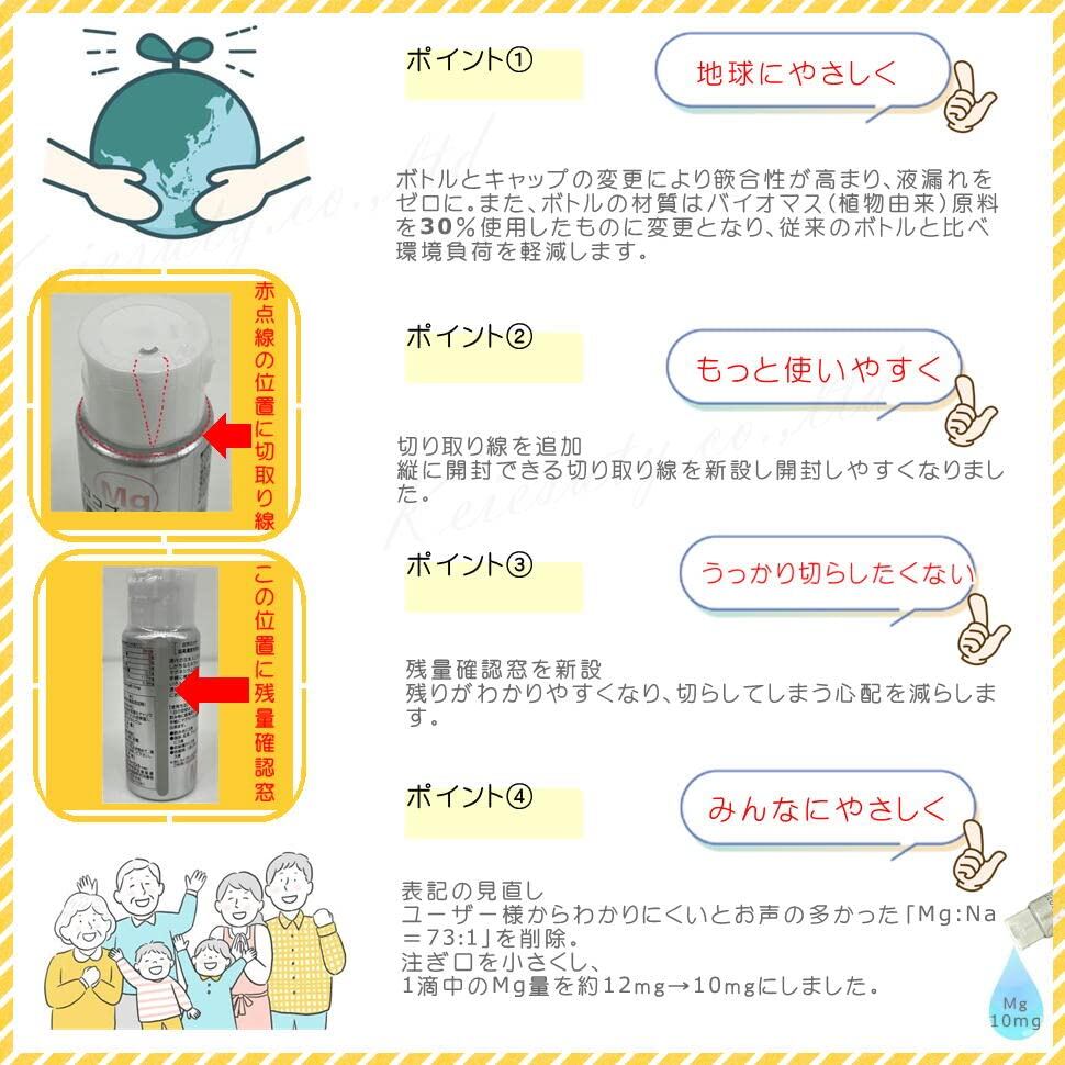 超高濃度マグネシウムは大自然が作りだすミネラルを使用しています。不足しがちなマグネシウムをカラダになじみやすい塩化マグネシウムの形態で摂取できます。スプレー付属です。