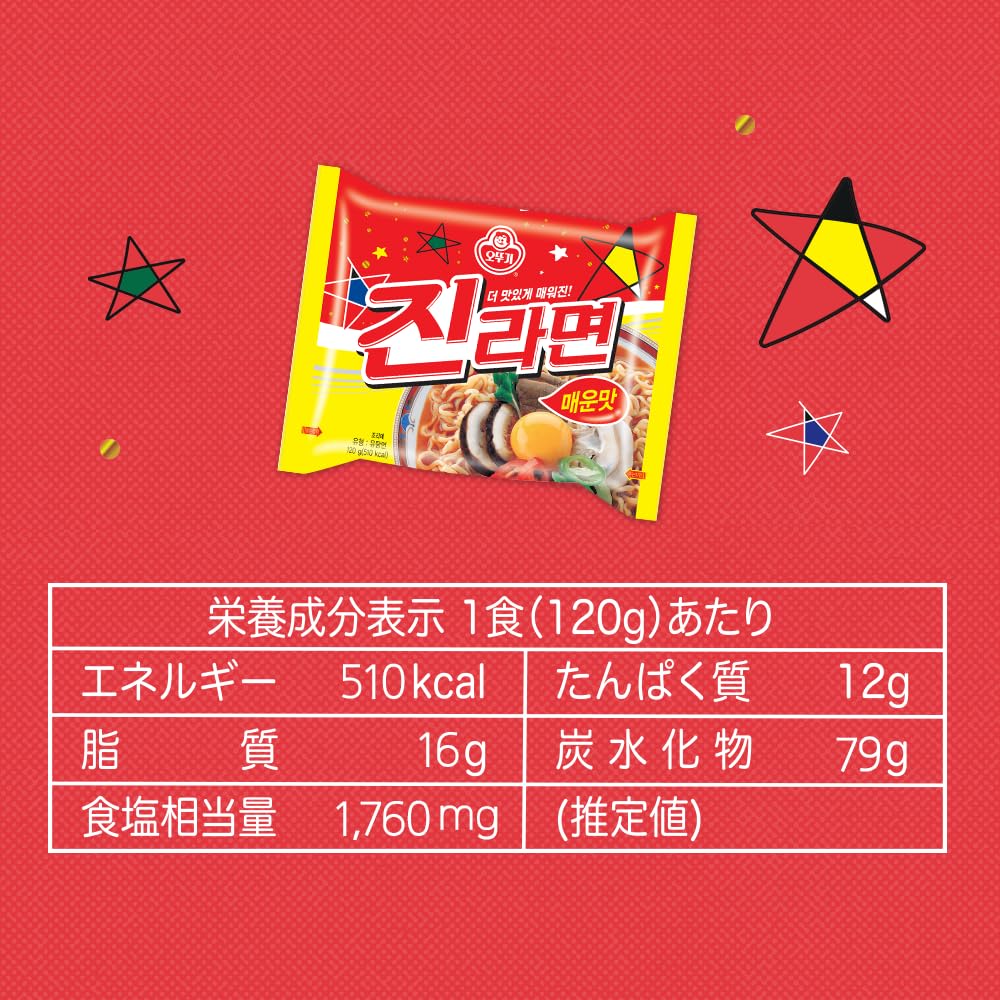 OTOKI オットギ 公式 ジンラーメン辛味(袋)5食 韓国ラーメン 袋麺 (120グラム*5個 (1パック))