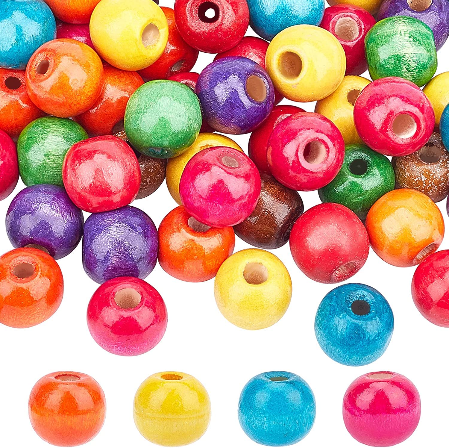 PH PandaHall 約100個 ミックス ウッドビーズ カラフル 丸型 ビーズ 手作り用品 DIY用 パーツ 混合色 14mm ハンドメイド アクセサリーパーツ