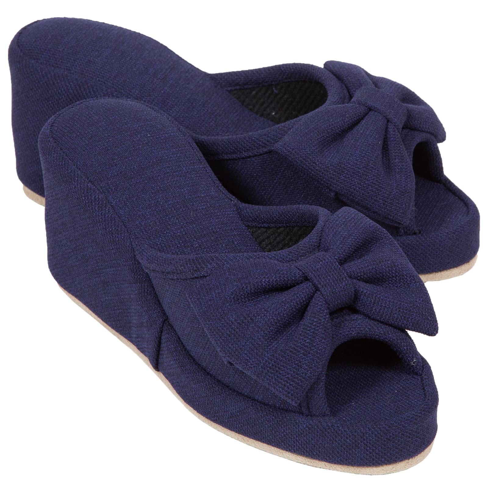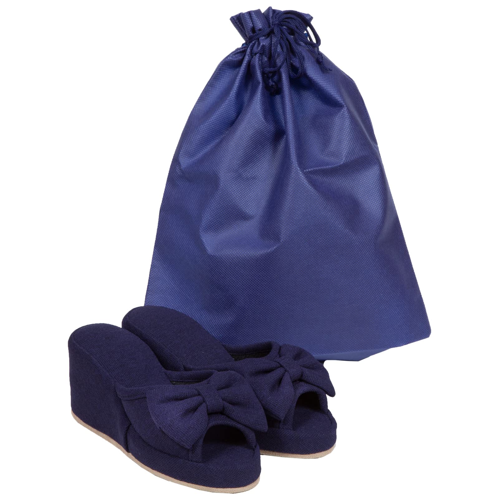 [ハッピークローバー] リボンスリッパ ハイヒール 8cm 裏底静音仕様 学校行事 参観日に 収納袋付き [共布リボン/ネイビー]