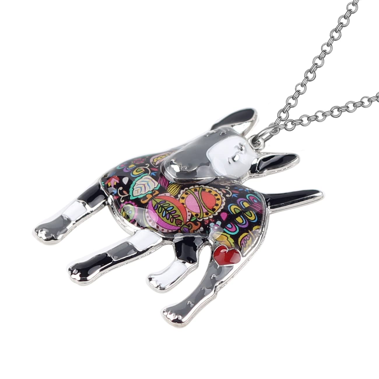 BONSNY "Bowser" ラブハート エナメル合金 ペット イングリッシュブルテリア ドッグネックレス 動物 レディース ペンダント