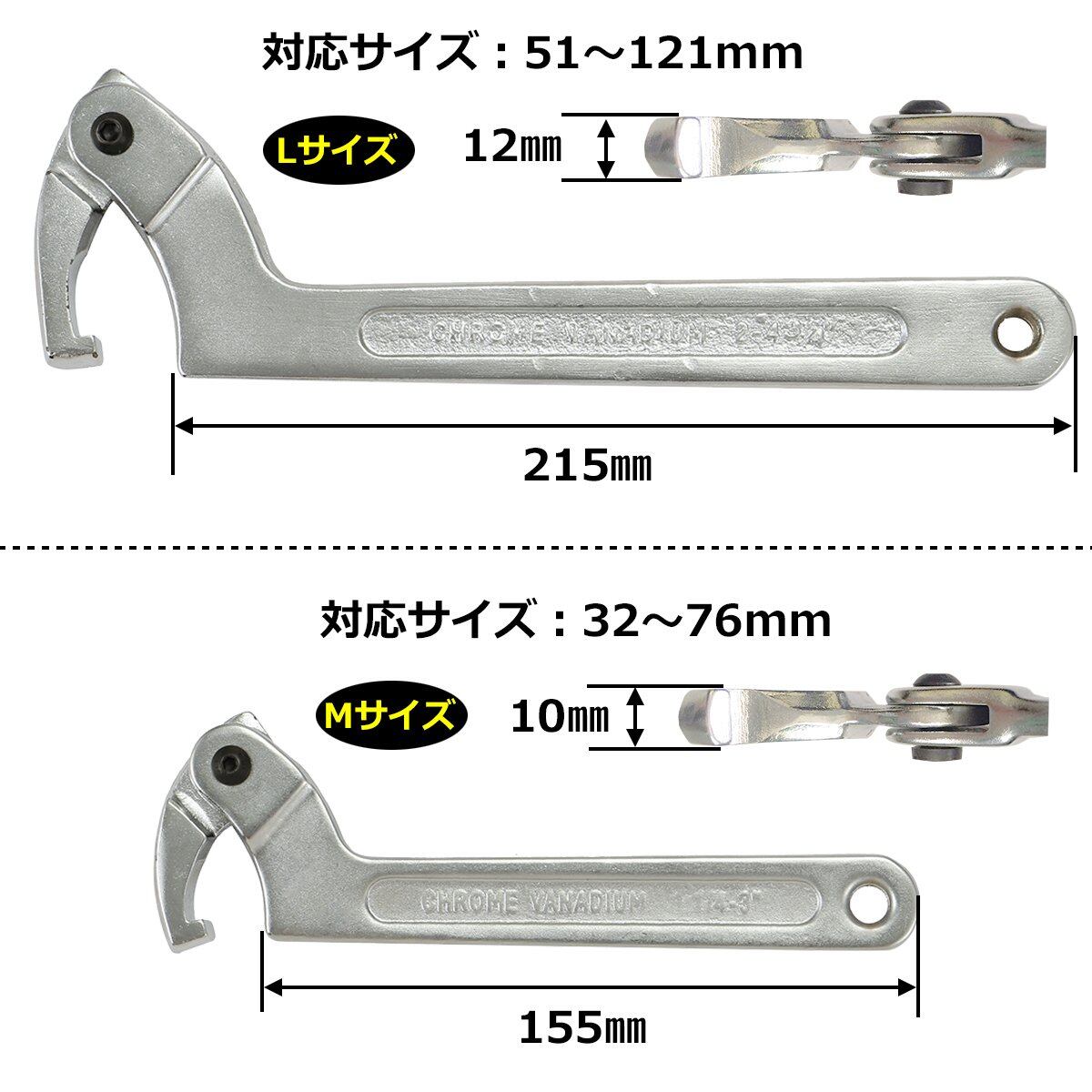 [ネグエス] フックレンチ 車高調レンチ レンチ 車 バイク 工具 32-76mm クロス付 Mサイズ