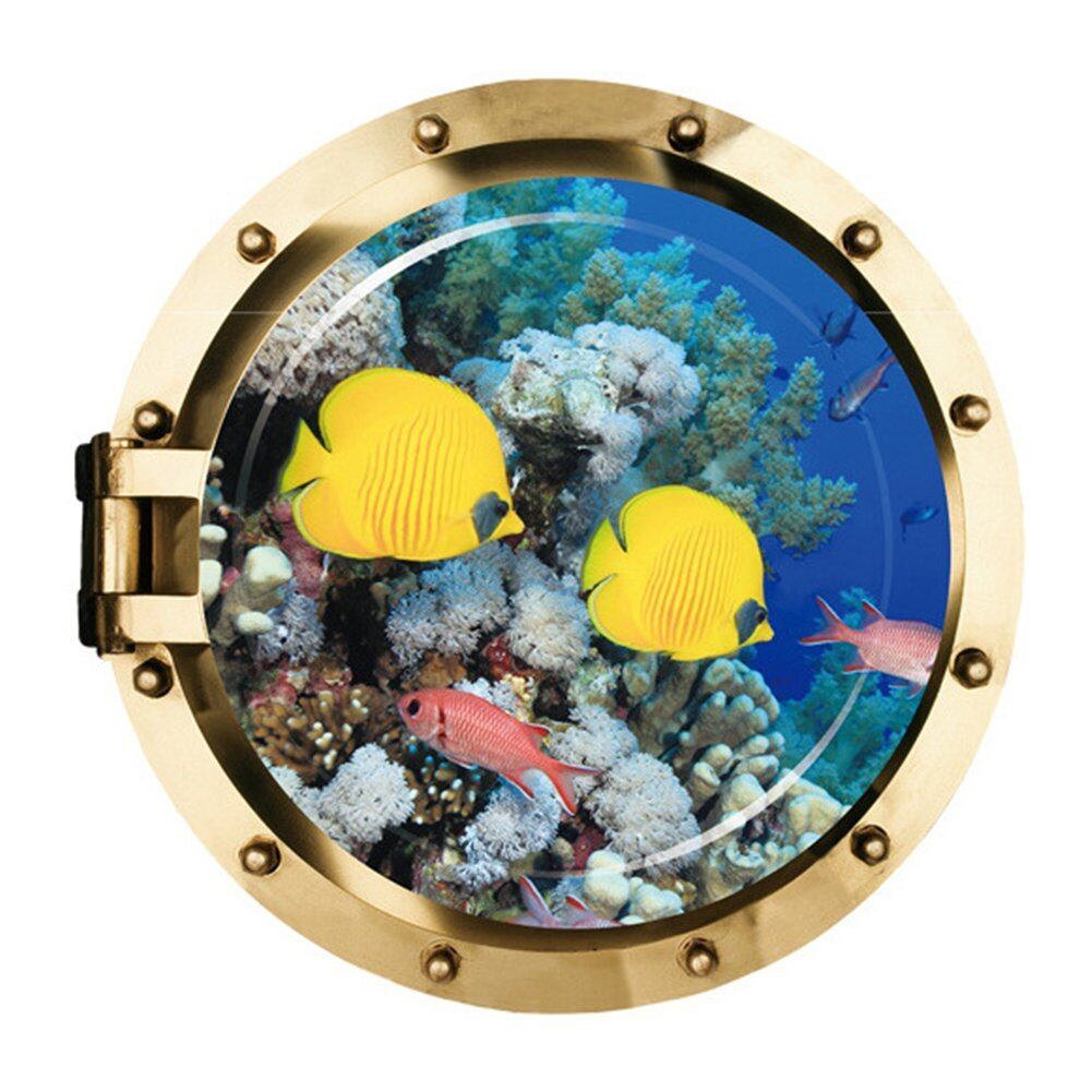 (ハッピー・ライフ)Happylife ウォールステッカー 3D 潜水艦の窓 海 魚 剥がせるシール