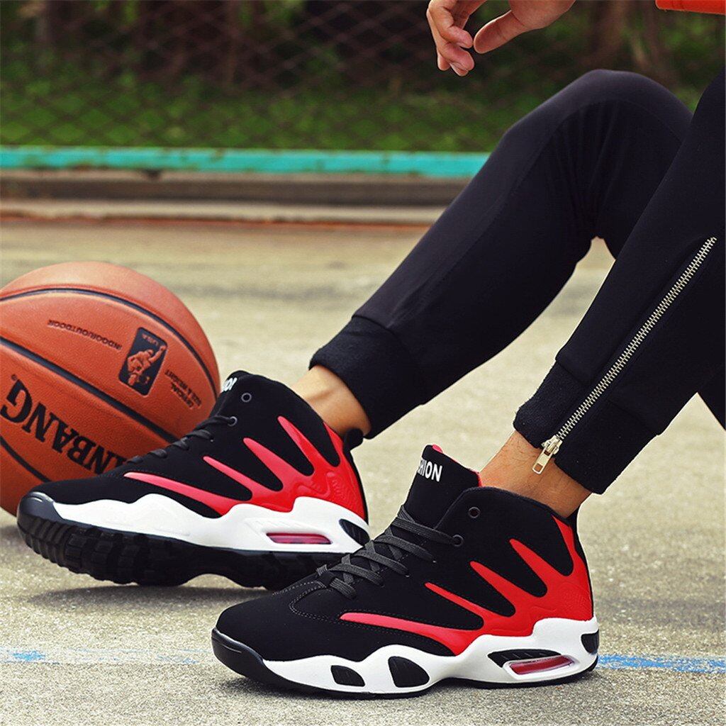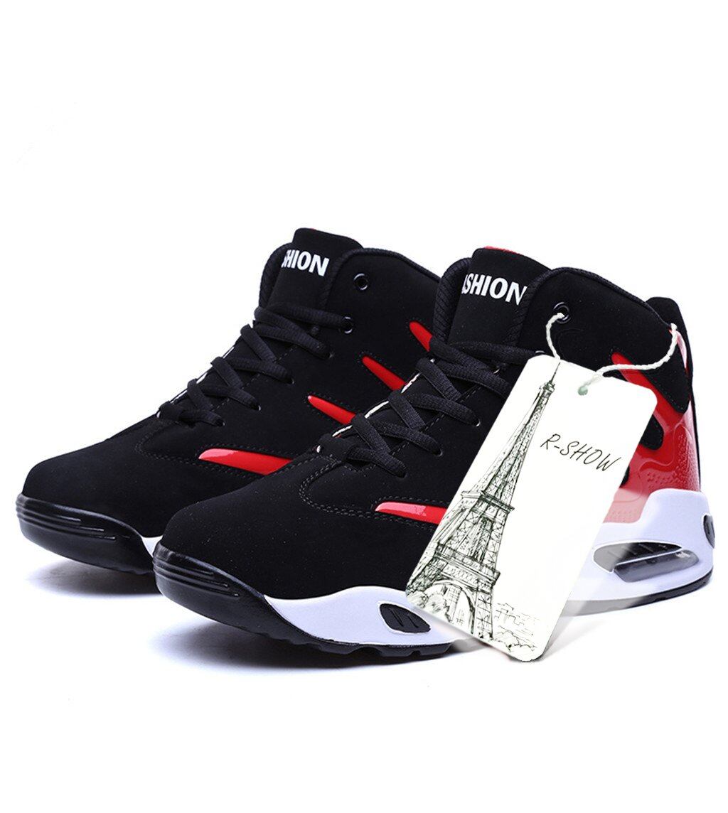 [Ebags Store] 身長UP 6CM ストリート系 メンズ レディーズエアー バッシュ ハイカット ヒップホップ スケートシューズライン ストライプ 厚底 シークレットスニーカー (27.5CM, ブラック*レッド)