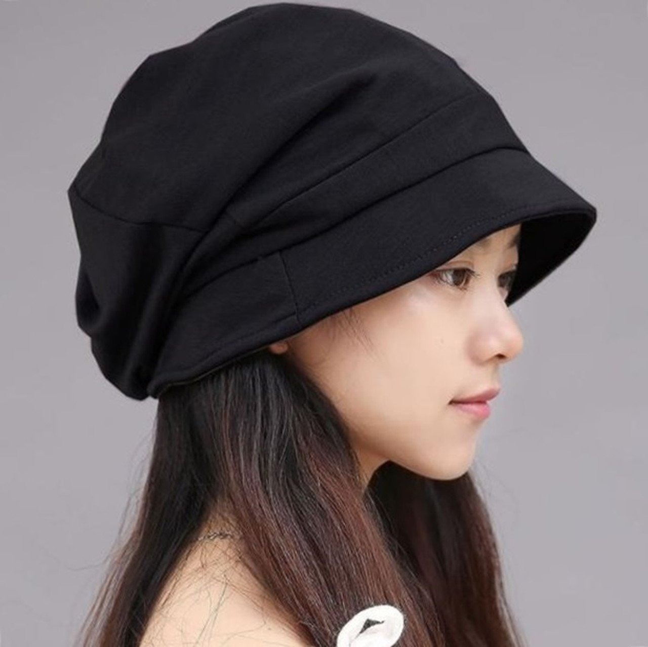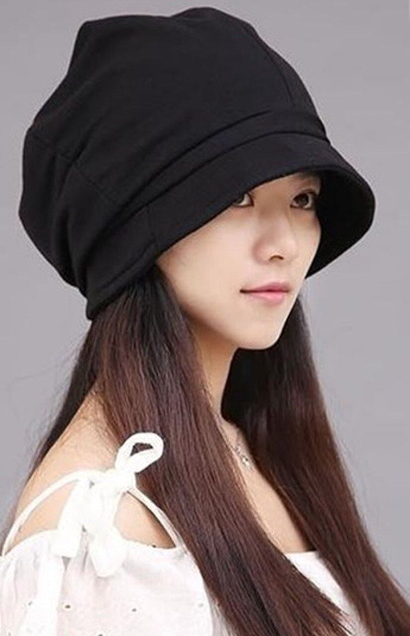 [BEREAM] キャスケット レディース ニット帽 ハット コットン 帽子 オールシーズン (ブラック)