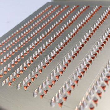 使用される銅板は、まず金槌で叩き込み硬度を高めていきます。そうすることにより硬い繊維にも負けない鋭い刃が出来上がります。鍛え上げられた銅板に錫を塗りメッキ仕上げにしサビを防ぎます。そしておろし金の出来を左右する目立ての作業に入ります。職人がひとつひとつたがねを使い目立てされた刃は非常に鋭利でまた刃が立っています。機械では出せない不規則な刃で どの角度からでも鋭く素材をおろすことが出来、水気をそこなわず旨みを凝縮したおろしが出来上がります。