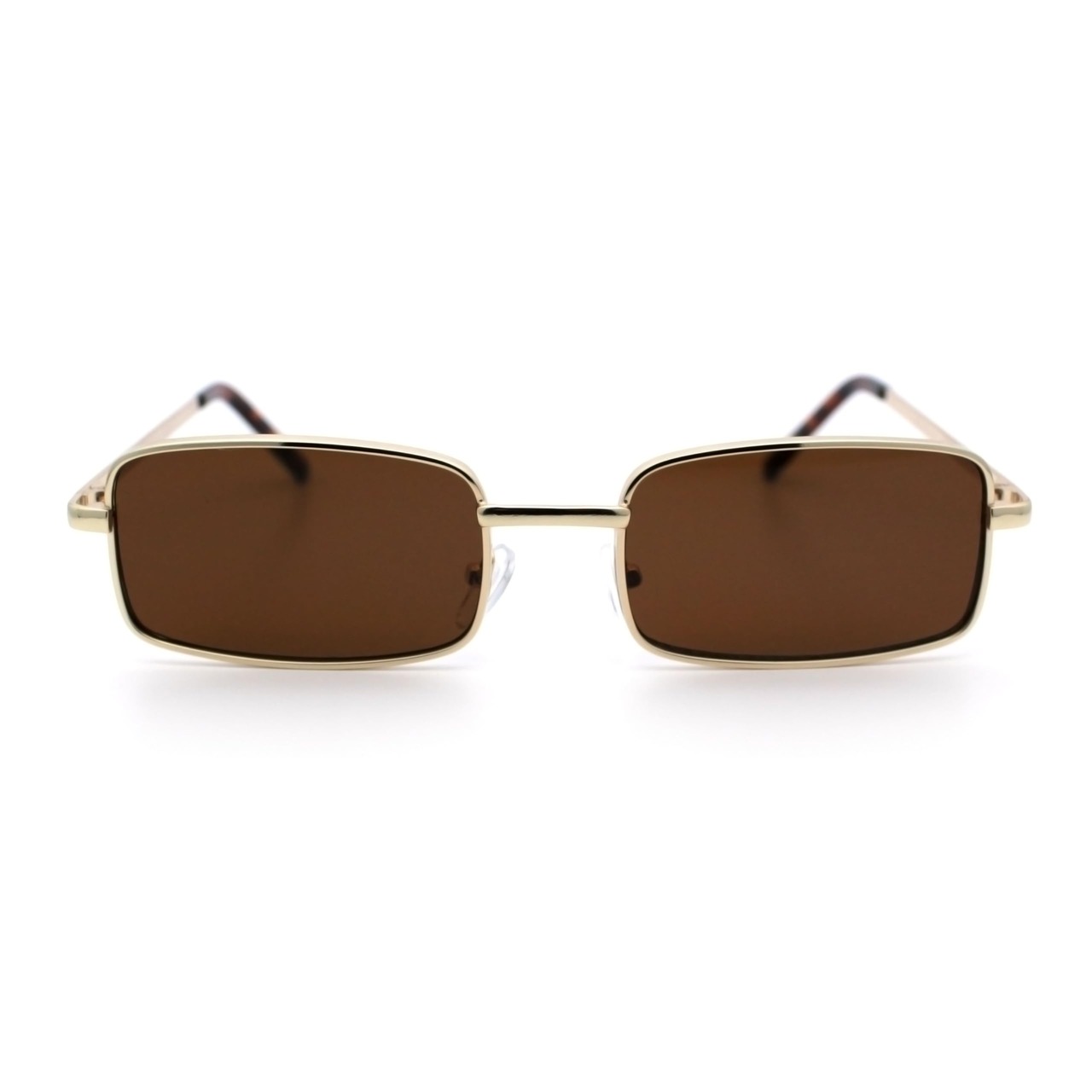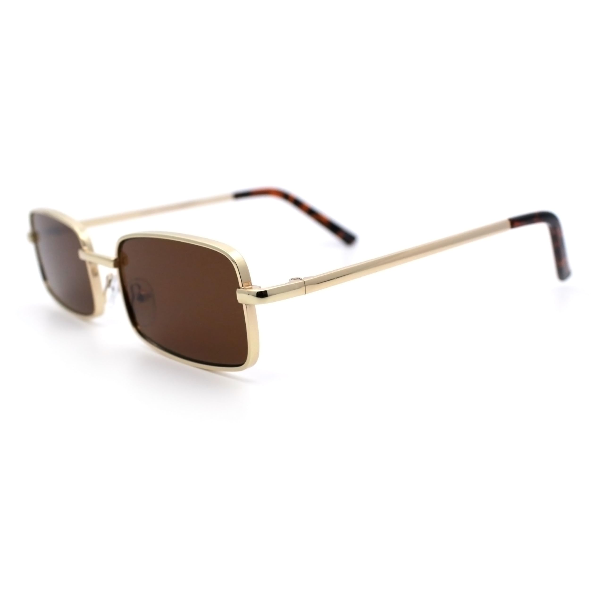 SA106 メンズ レトロ ヴィンテージ ナロー 長方形 ポン引きメタルサングラス, ゴールドブラウン, 5 1/2"(140mm) x 1 1/4"(32mm)