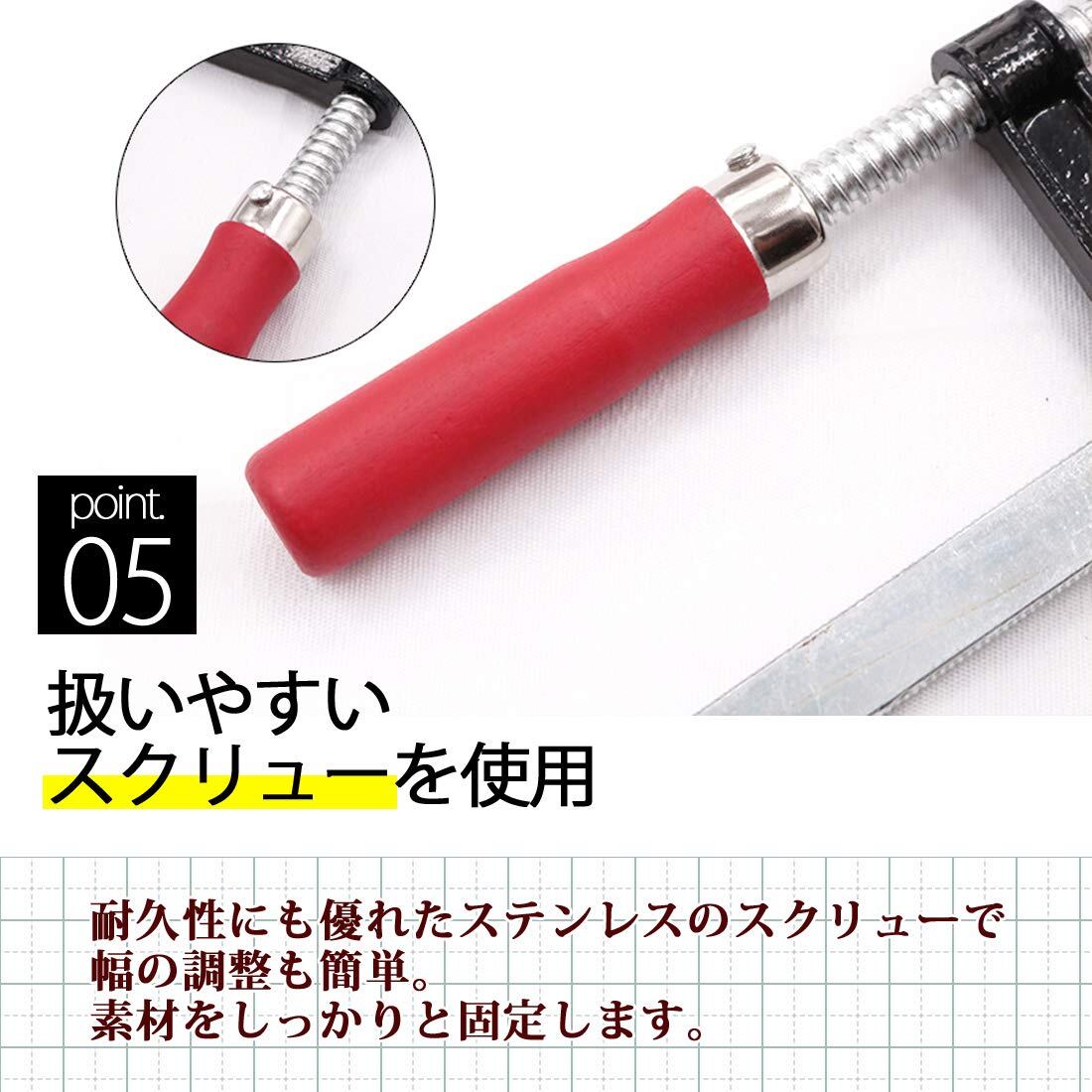 【木工用クランプの汎用性】耐久性に優れたスチール素材を使用したこの製品は、f型クランプ400としても活躍。直固定からL型的な使い方まで対応し、家具製作などの木工プロジェクトにも最適です。diyクランプとしても非常に使いやすく、定番工具として常備しておきたい一本です。