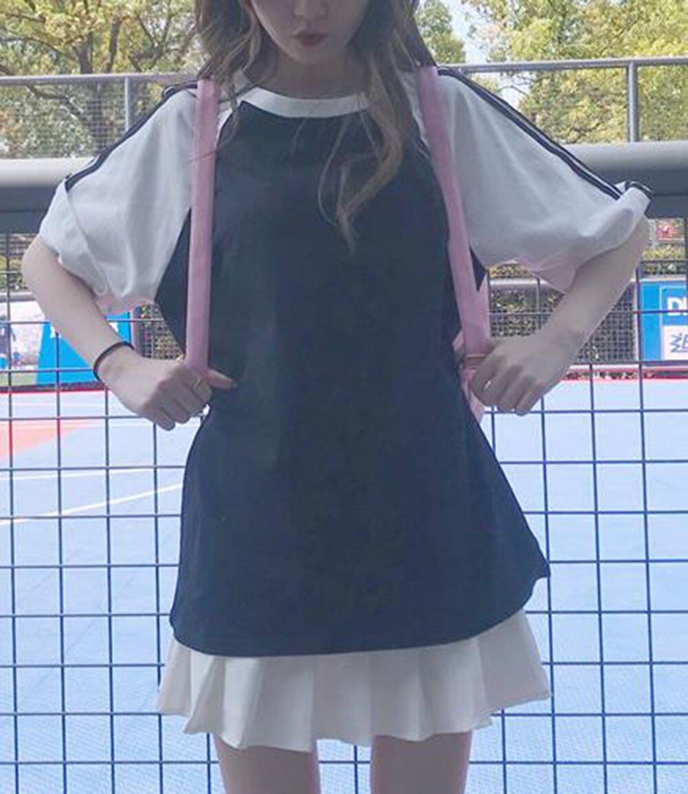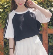 BSCOOL半袖 tシャツ レディース ゆったり 夏 バイカラー レディース トップス 韓国ファッション tシャツ(黒)