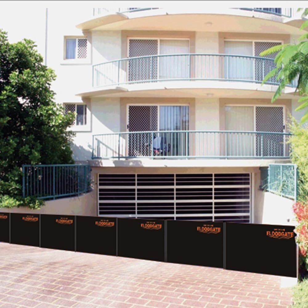 複数のフラッドゲートをつなぐ3方向コーナー支柱。