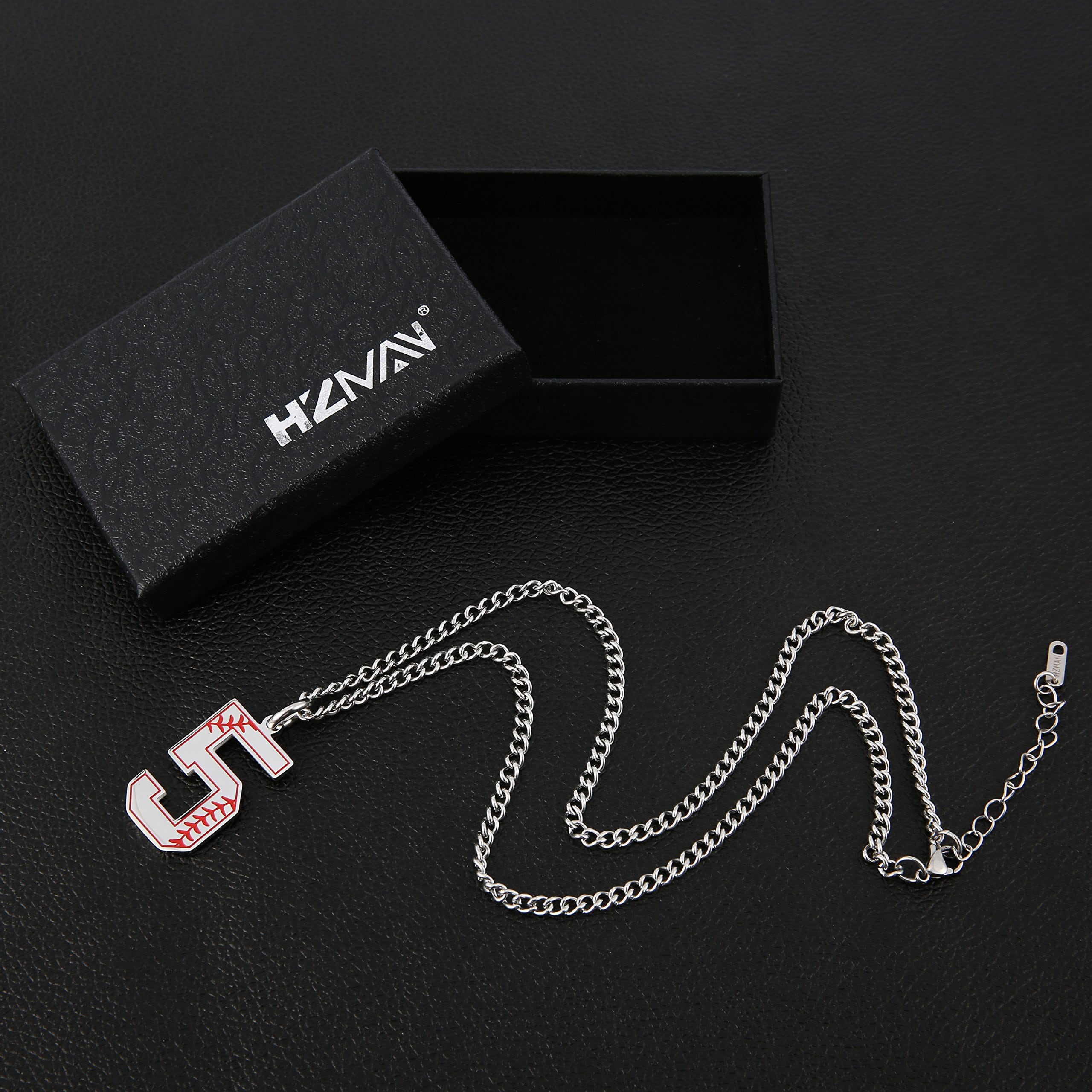 HZMAN ベースボール イニシャル ペンダント ネックレス インスピレーション ベースボール ジャージ 番号 0-9 チャーム ステンレススチール ネックレス