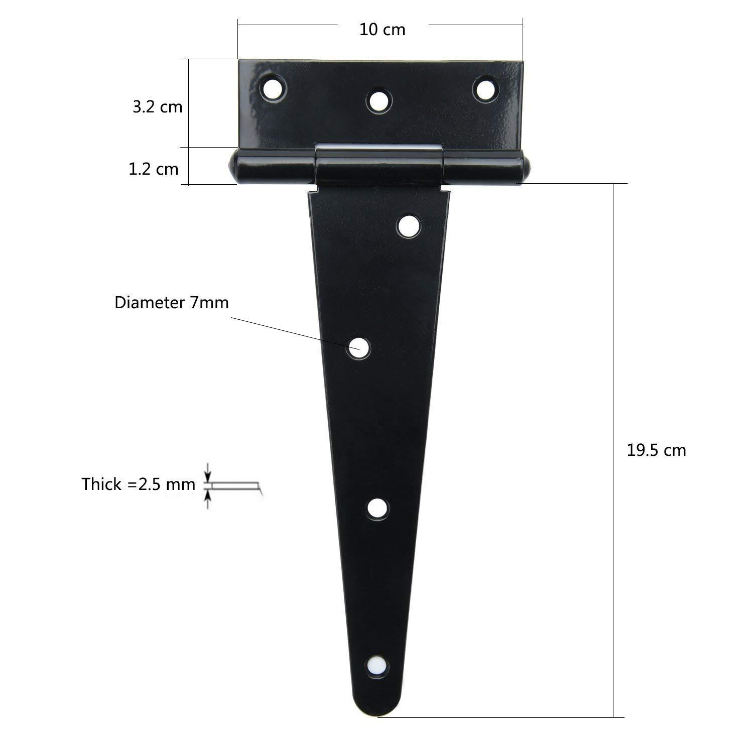 LUCKYBEE ドアヒンジ ヘビーデューティー Tヒンジ 蝶番 8インチの長さ 学校 部屋 T字型 クローゼット キャビネット ゲート ドア ティーヒンジ 金具 ブラック 2個セット