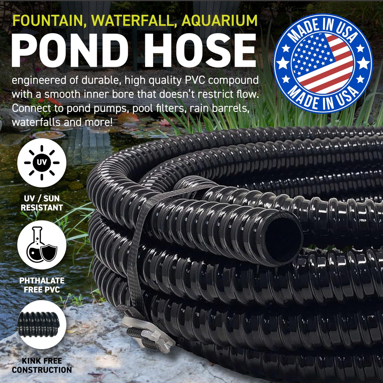 シールプルーフ ねじれ防止 直径1-1/4 ウォーターフォール 池チューブ 水槽ホース 内径1-1/4インチ 20フィート ブラック 波型 米国製