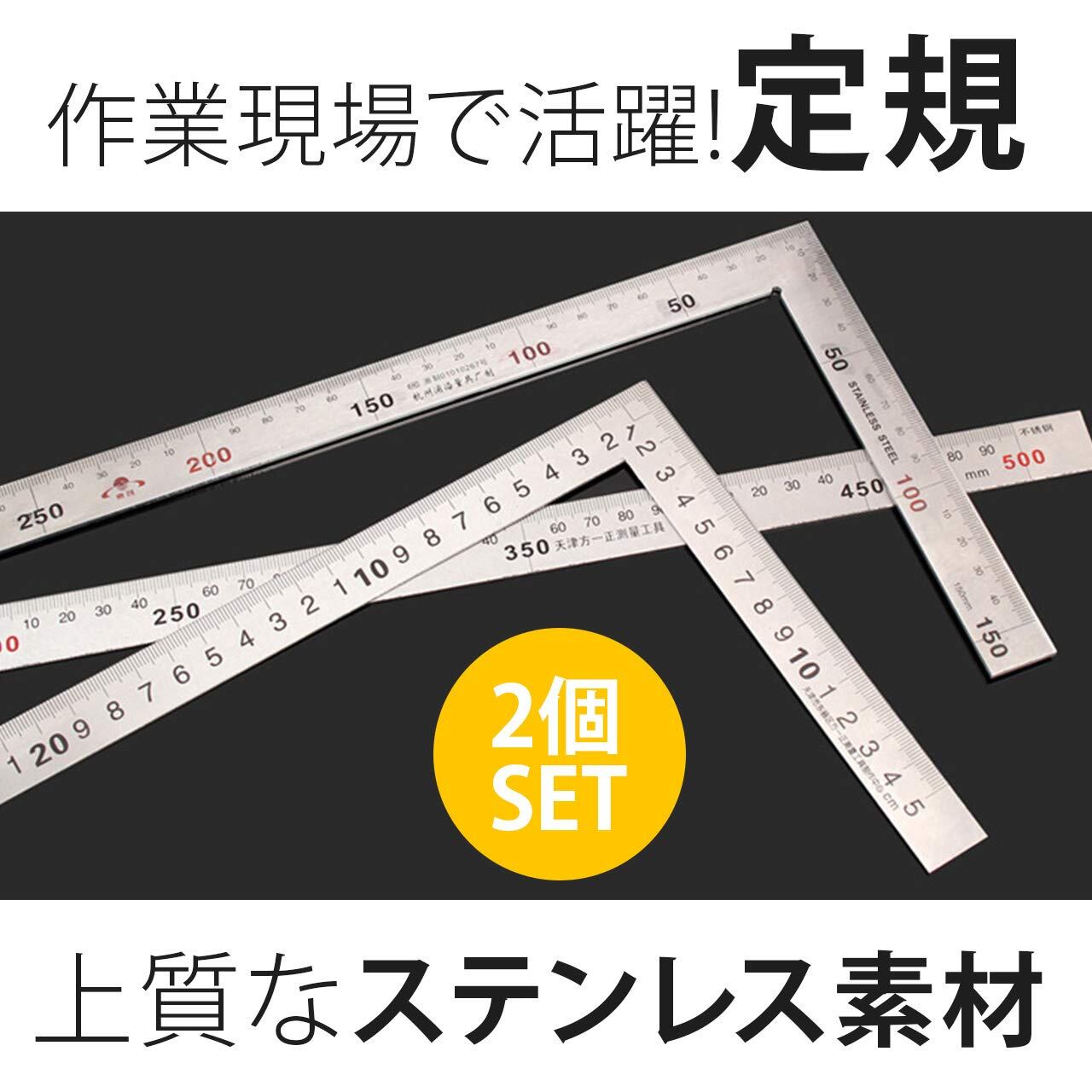 作業現場で活躍:構造自体はシンプルながら、寸法を測ったり、平行線を引いたり、曲線を引いたりとマルチな活躍をしてくれる差し金。数多くの使い方があるアイテムですので、自分にとって使いやすい差し金を入手して、使い方をマスターすると楽しみが増えること間違いなしです。<br><br>頑丈なステンレス製:上質なステンレス素材を採用し、錆びにくく耐久性にも優れているので長期間ご使用いただけます。幅広タイプなので細かな測定をする時も位置がズレたりすることもありません。作業効率をアップしてくれるアイテムです。<br><br>幅広い用途:シルバー加工で表面の反射を抑え目盛が読み取りやすくなっています。長さの測定や直角の確認はもちろん、ケガキ作業などにも適しています。厚みと重みのあるL字形なので、カッターで切る作業の押さえとしても活用出来ます。<br><br>2個セットで使い分け:ご使用シーンに合わせて使い分けることも可能です。使いやすさと機能性を兼ね備えているので、DIYや日曜大工など趣味を楽しまれている方はもちろん、鉄工、土木工事をされるプロの方まで幅広くご使用いただけます。<br><br>サイズ:約150×300mm 材質:ステンレス カラー:シルバー ※モニターの環境等により、色の見え方に若干差が生じる場合がございます。
